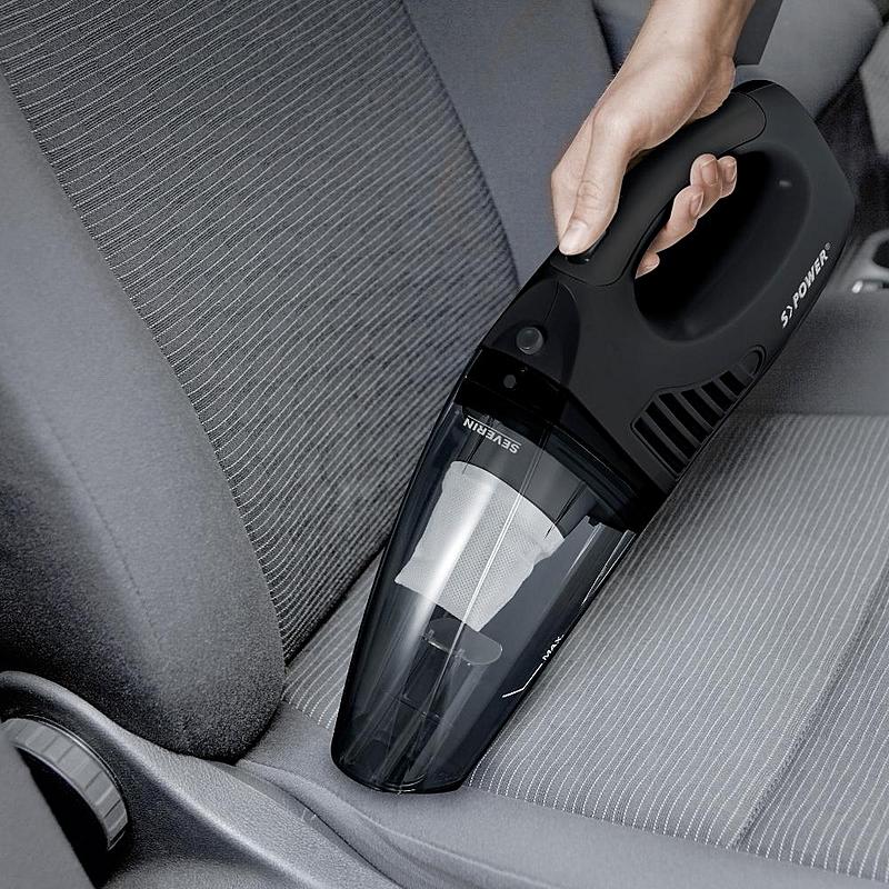 Ruční bezsáčkový vysavač Severin s jednoduchým vyprazdňováním nádoby a možností vysávání tekutin.