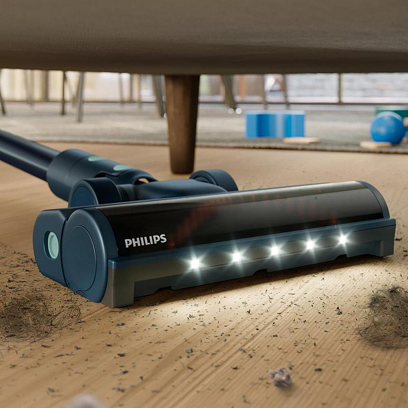 Tyčový vysavač Philips s funkcí mopu, cyklonovou technologií a LED osvětlenou hubicí.