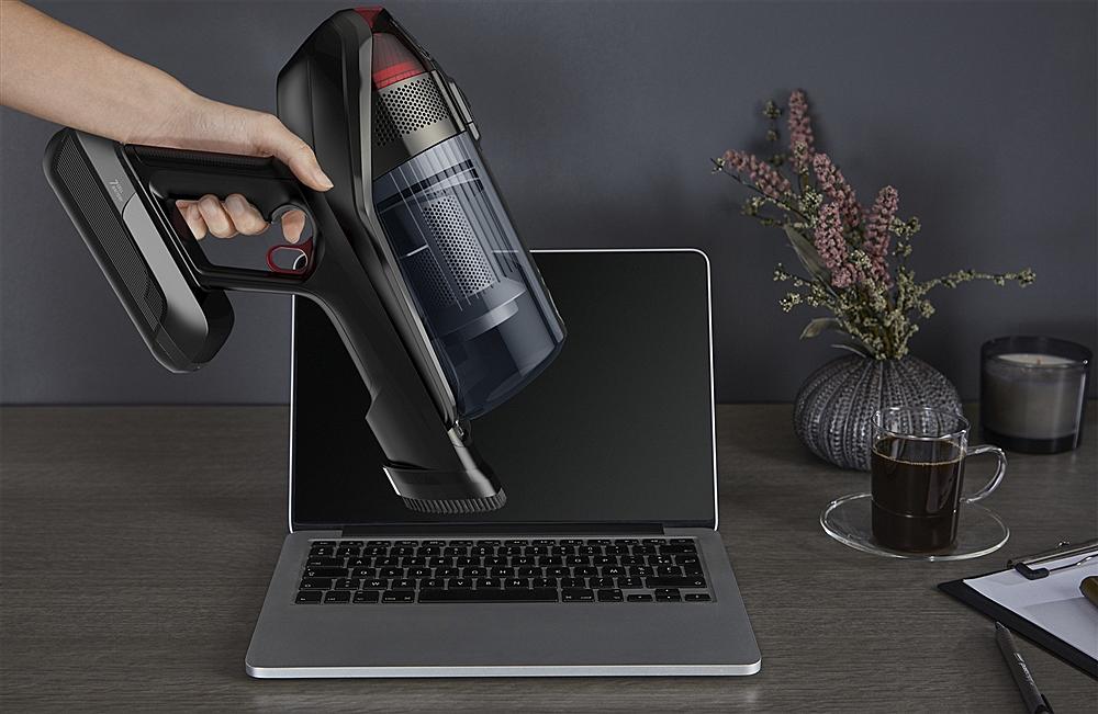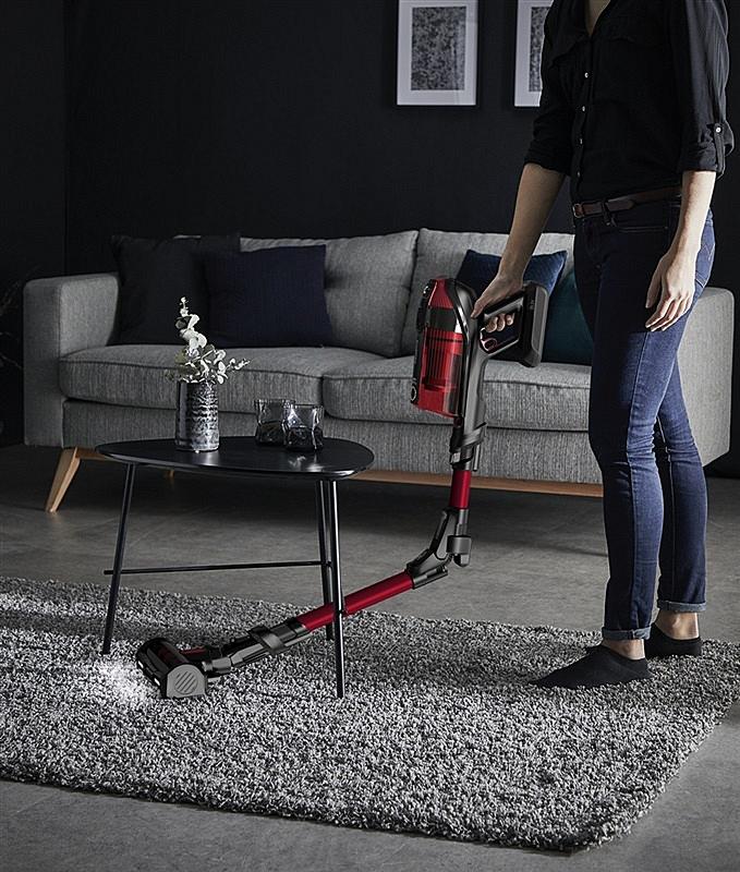 Tyčový vysavač 3v1 Rowenta s bezsáčkovou filtrací, sacím výkonem 150 W a objemem nádoby 0,9 litrů.