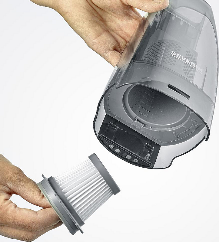 Tyčový vysavač Severin s indikátorem nabíjení, turbokartáčem a objemem 650 ml.