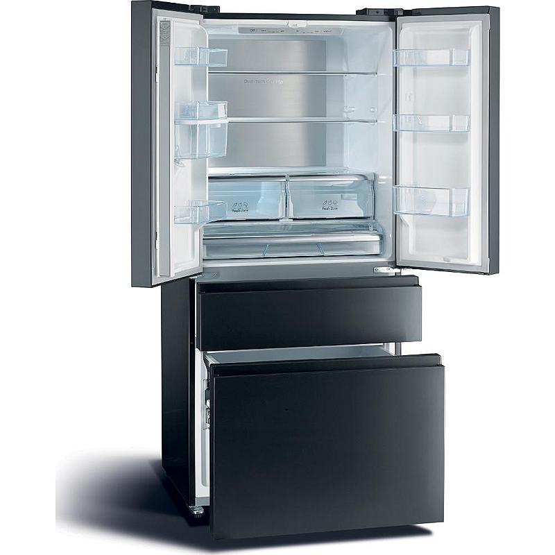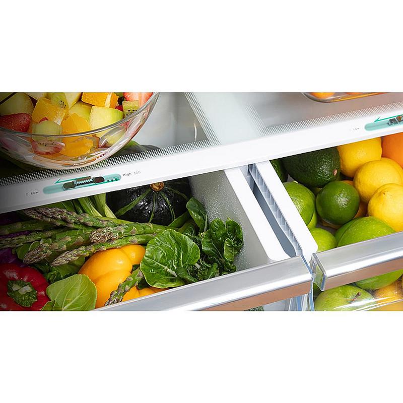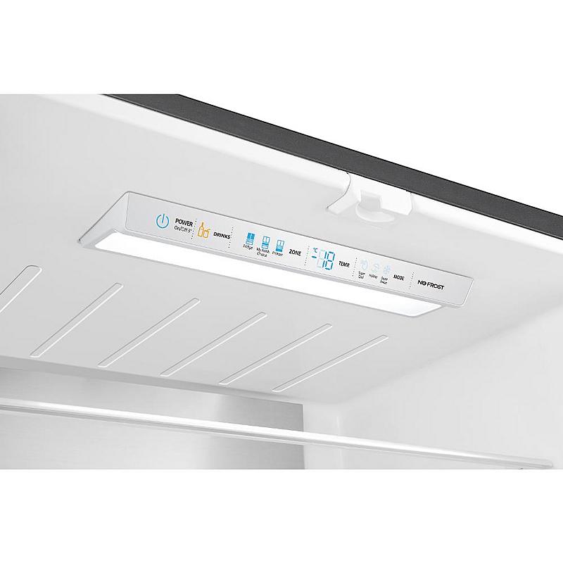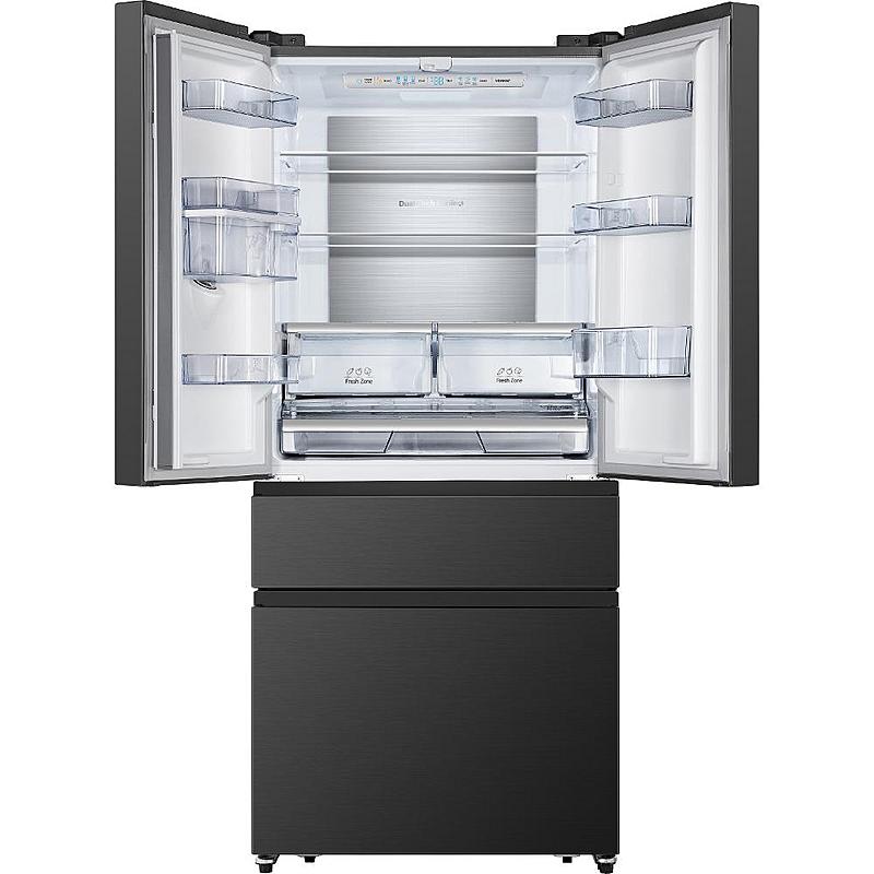 Americká lednice Hisense s invertorovým kompresorem, zeleninovou zásuvkou s regulací rychlosti a funkcí super chlazení a mrazení. Celkový objem 480 l a dávkovač vody.