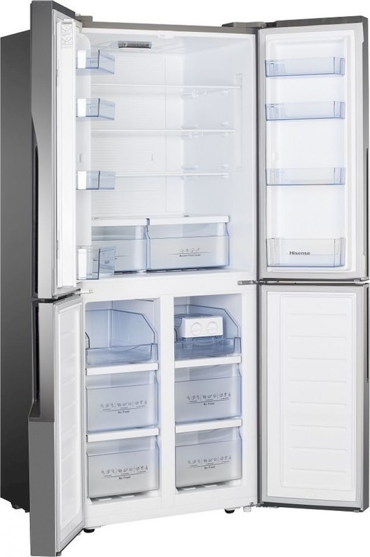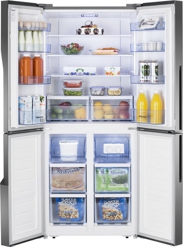 Beznámrazová americká chladnička Hisense s LED osvětlením a funkcí rychlého mrazení. Energetická třída A+, mrazící výkon 12 kilogramů za den a celková kapacita 432 litrů.