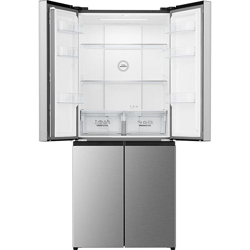 Americká lednice Hisense s invertorovým motorem, elektronickým ovládáním a funkcí super mrazení. Celkový objem 460 l a LED osvětlení.