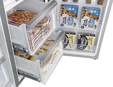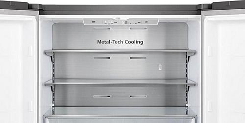 Americká chladnička Hisense s beznámrazovou technologií a funkcí rychlého chlazení a mrazení. Energetická třída E, LED osvětlení a celkový objem 609 litrů.
