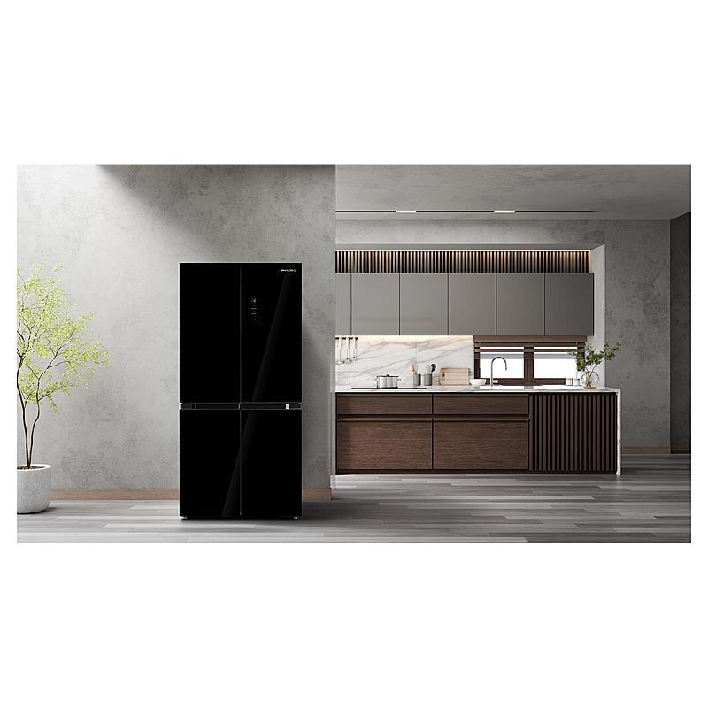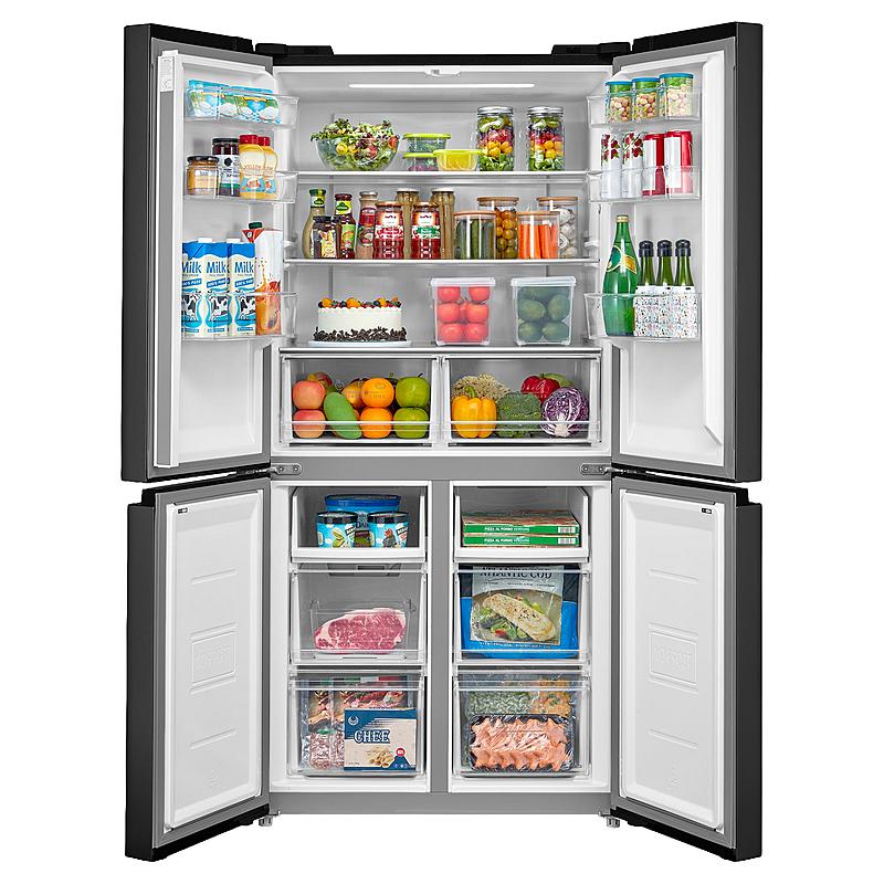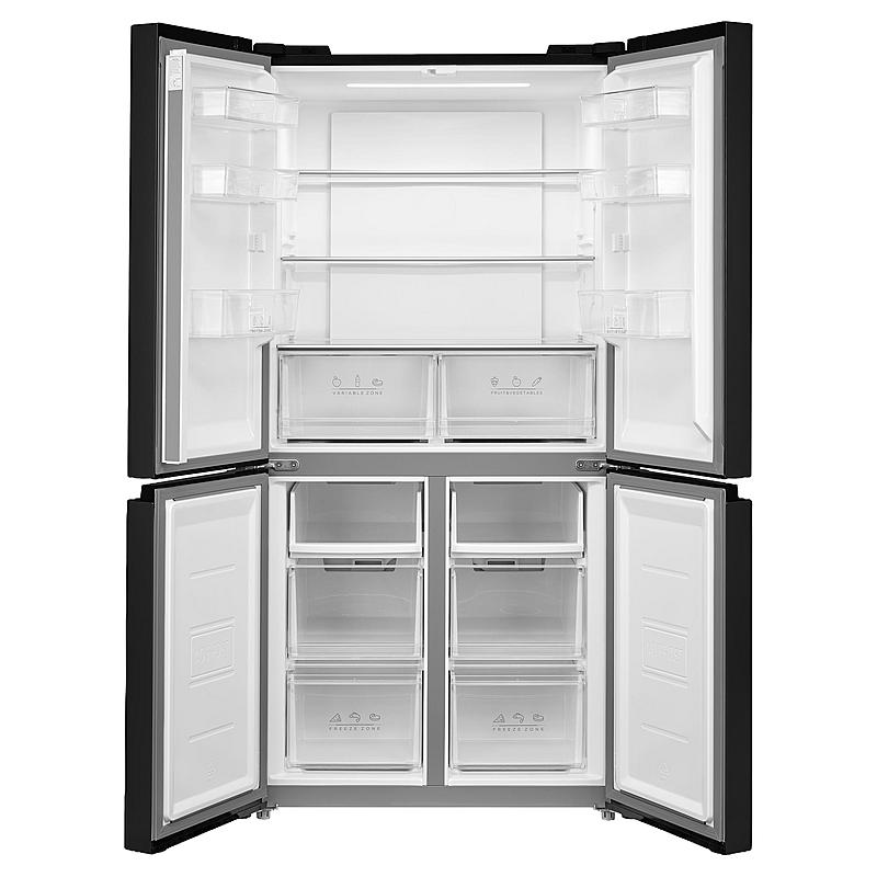 Volně stojící Slim čtyřdvéřová chladnička Philco s invertorovým kompresorem, elektronickým ovládáním a variabilní zónou. Celkový objem 474 l a funkce rychlé chlazení a mrazení.