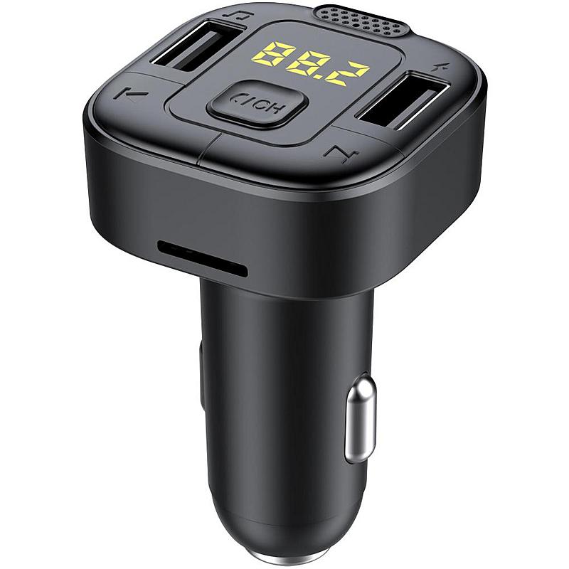 FM transmitter Sencor s LED displejem, ovládáním hlasitosti a vestavěným mikrofonem.