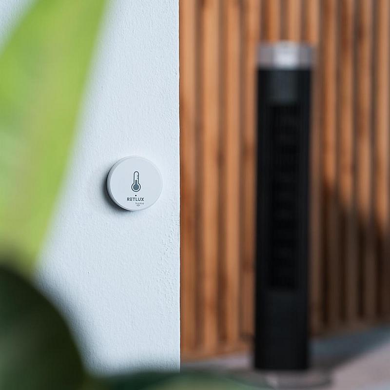 Smart senzor Retlux pro měření teploty a vlhkosti.