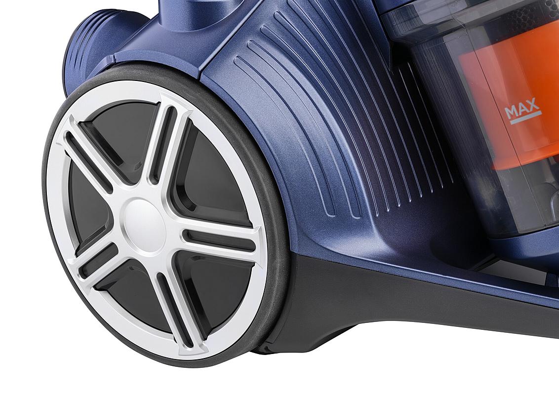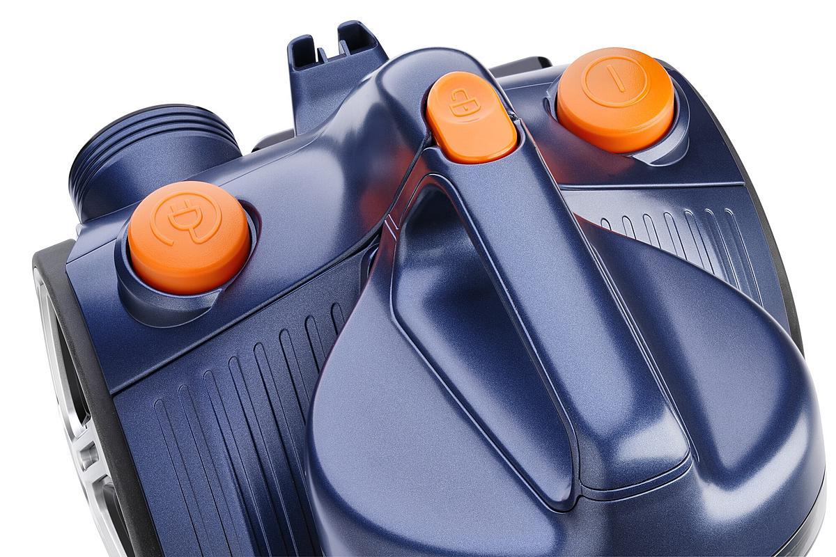 Bezsáčkový vysavač Amica s automatickým navíjením kabelu, mechanickou regulací výkonu na rukojeti a akčním rádiem 8 m.