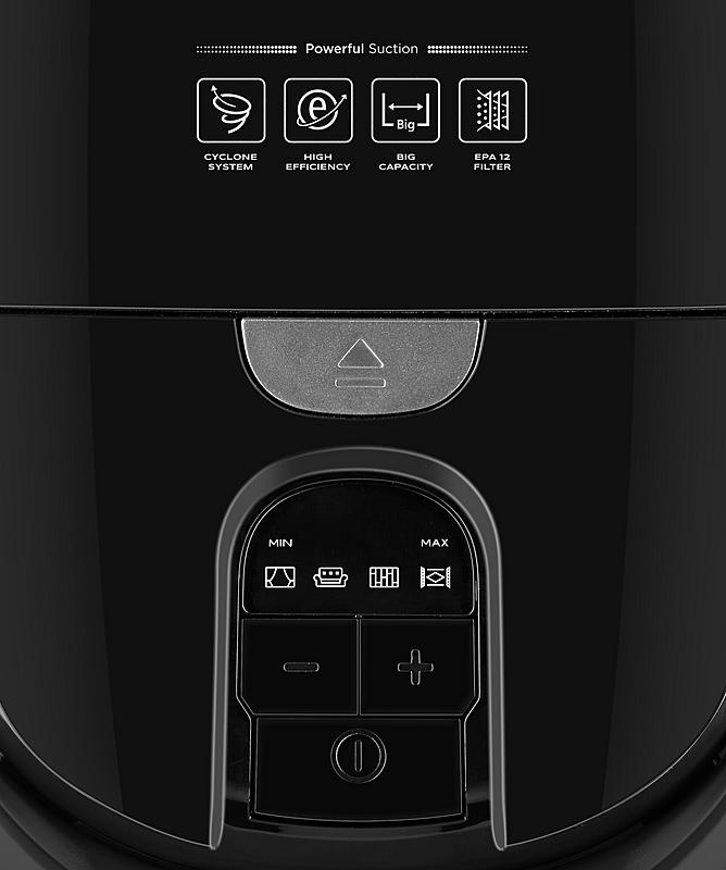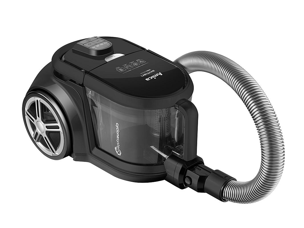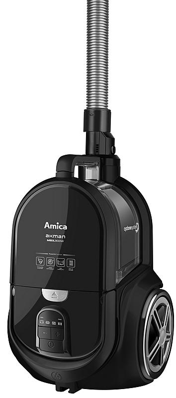 Bezsáčkový vysavač Amica s elektronickou regulací výkonu, LED displejem a turbokartáčem.