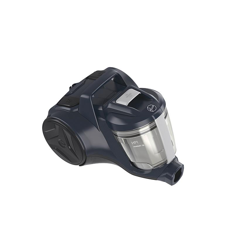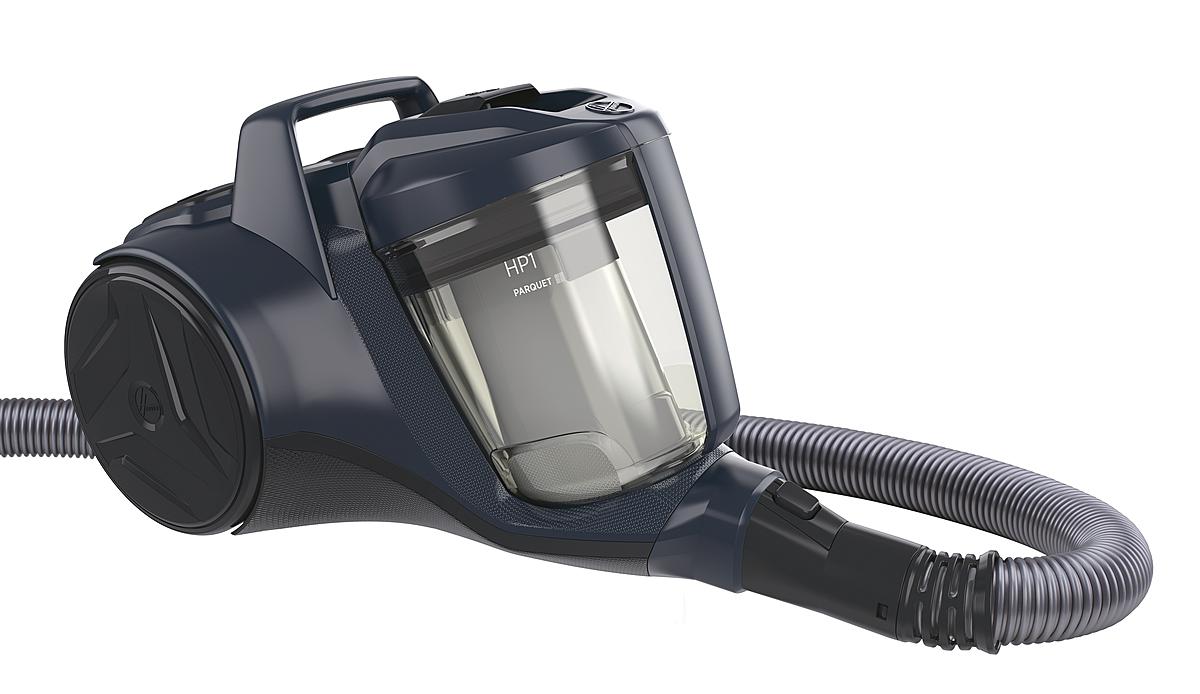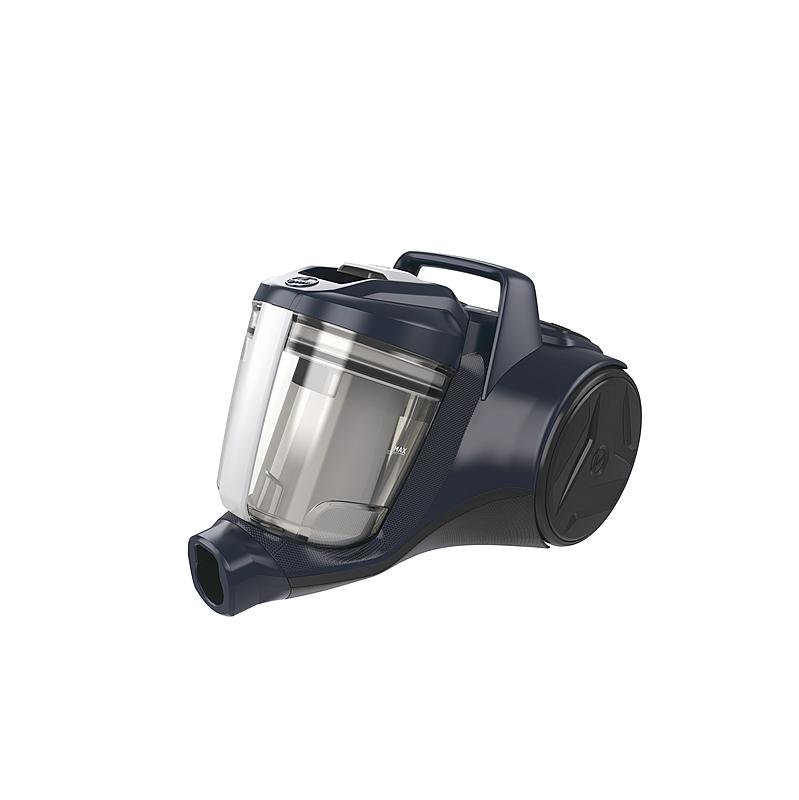 Bezsáčkový vysavač Hoover s jednoduchým vyprazdňováním nádoby, teleskopickou trubkou a regulací sání.