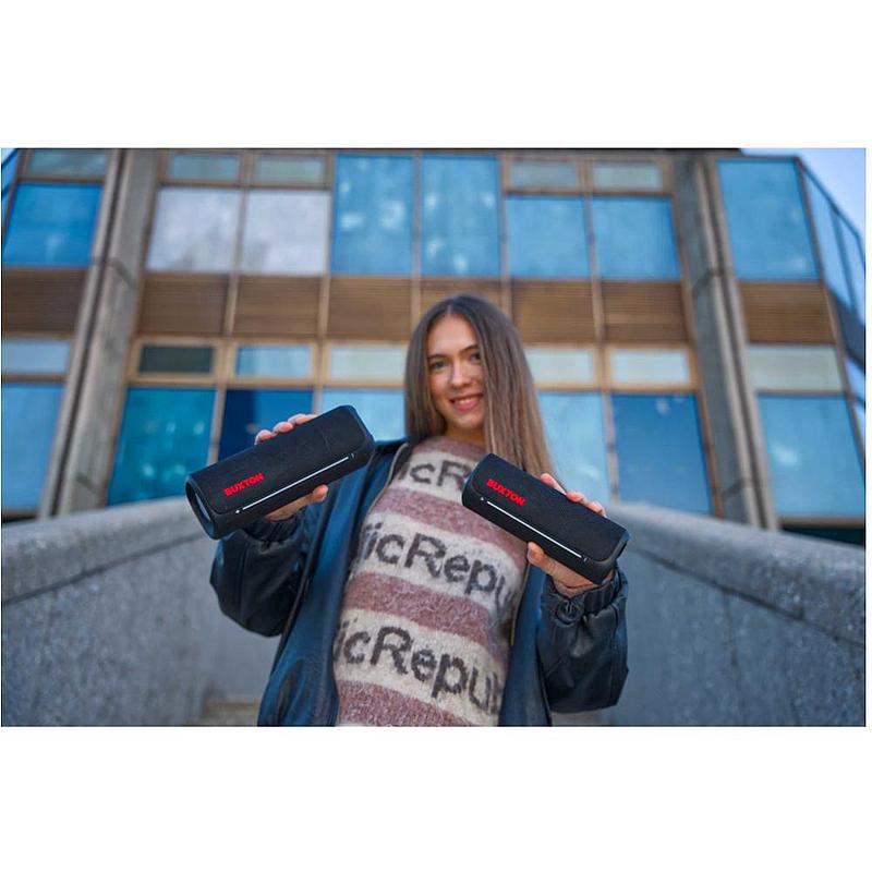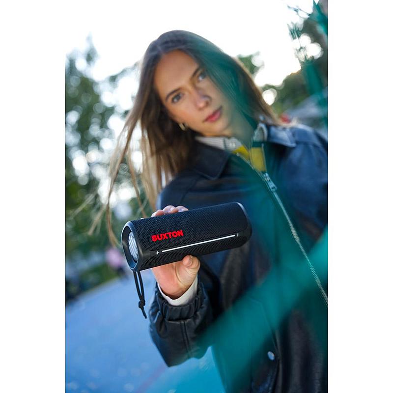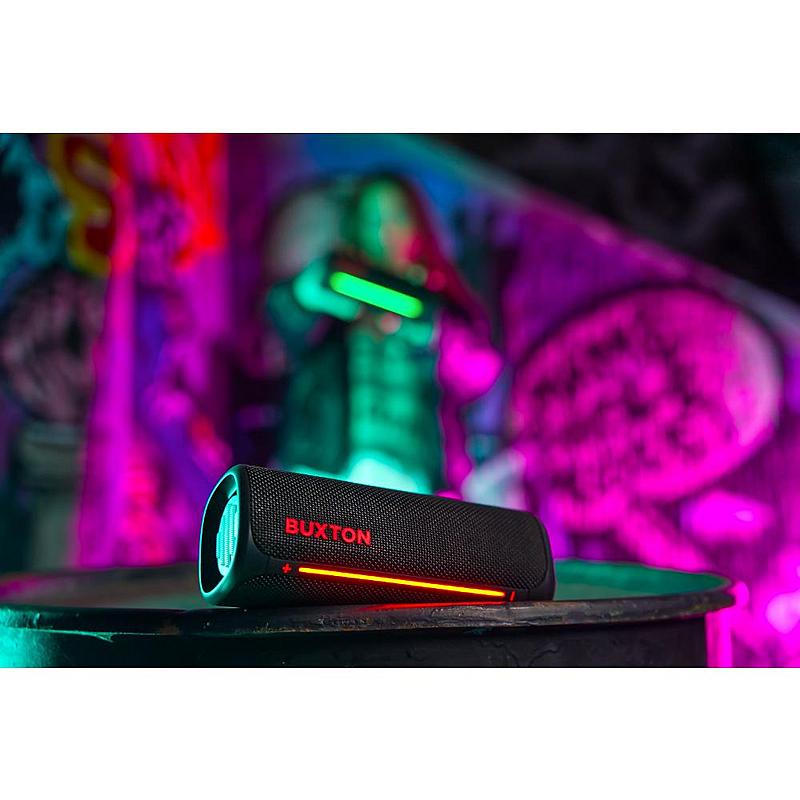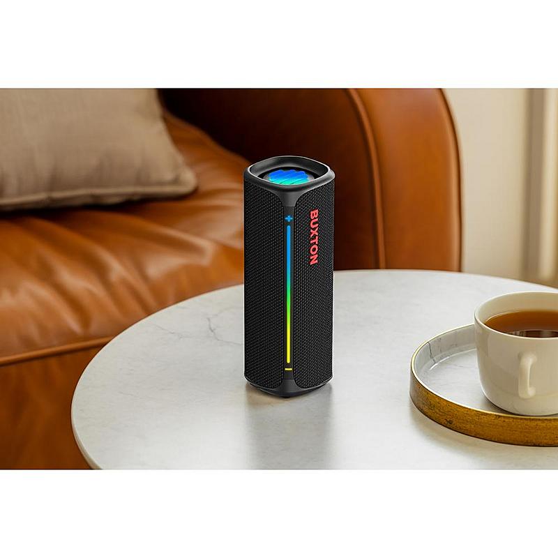 Bezdrátový reproduktor Buxton s integrovaným mikrofonem, světelnými efekty a funkcí handsfree. Funkce TWS a výkon 30 W.