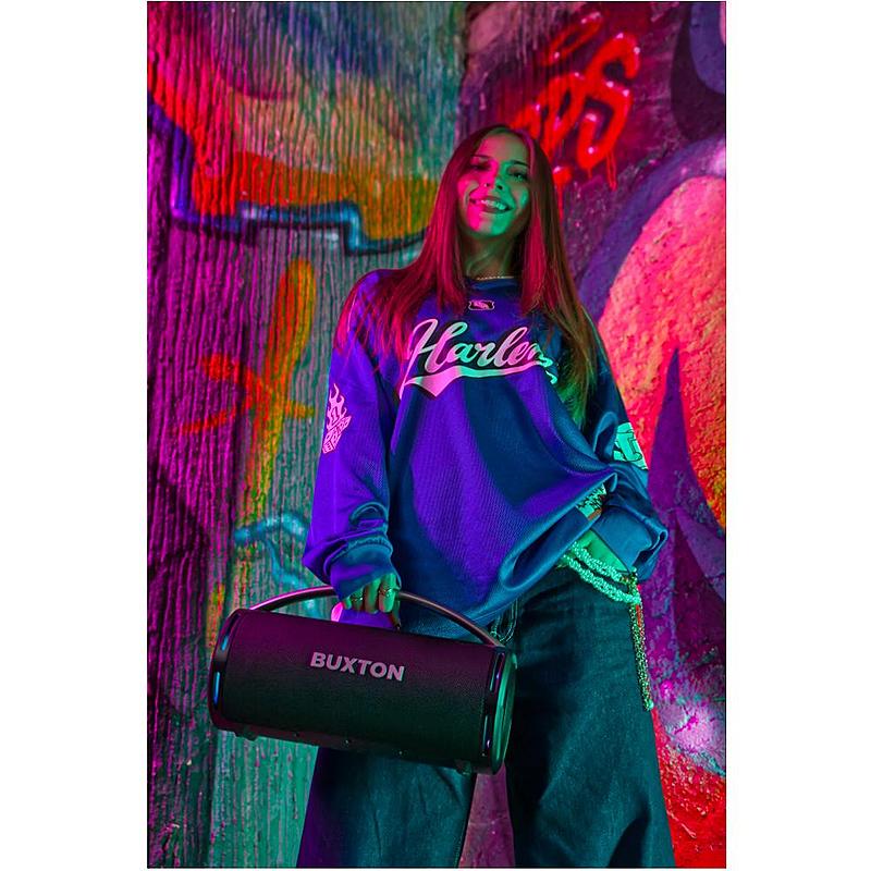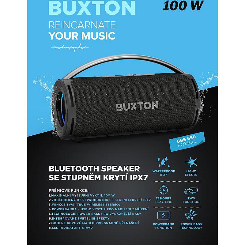 Bezdrátový reproduktor Buxton s funkcí TWS, integrovanými světelnými efekty a funkcí powerbanky.