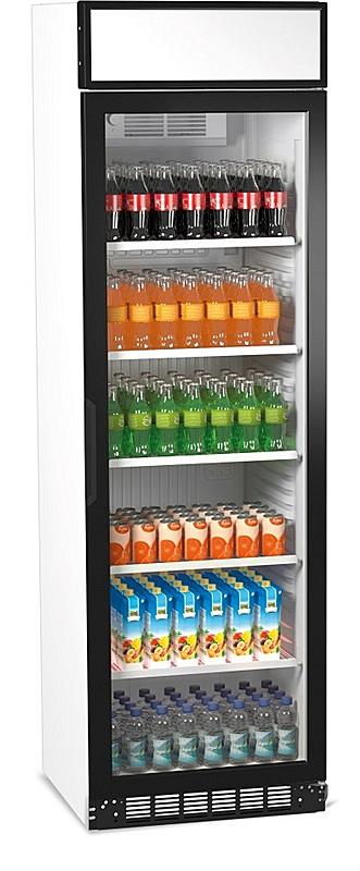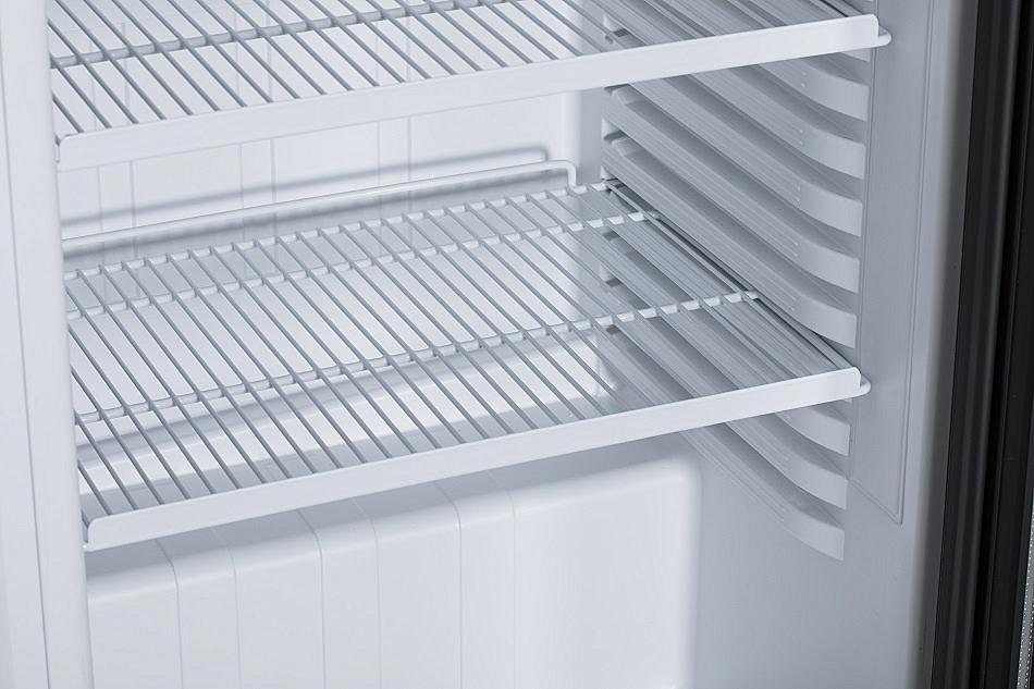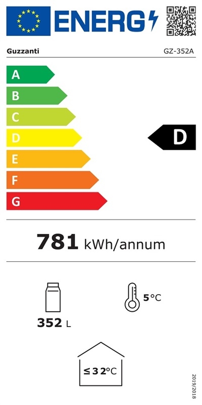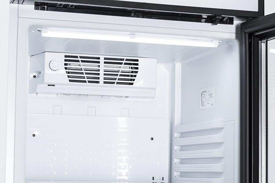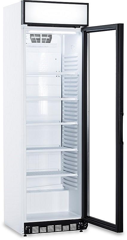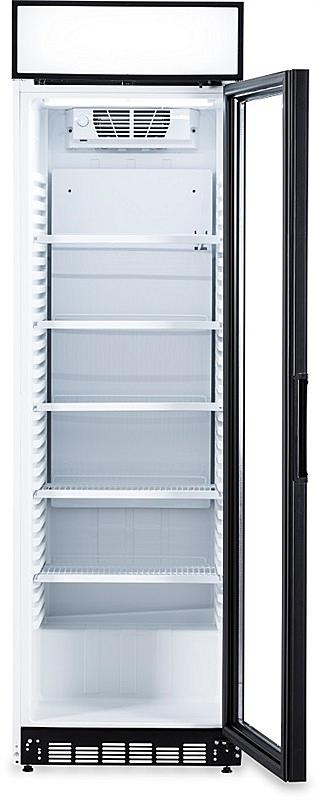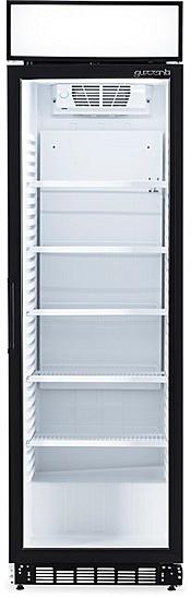Volně stojící chladící vitrína Guzzanti s objemem 346 litrů, vnitřním LED osvětlením a nastavitelným termostatem.