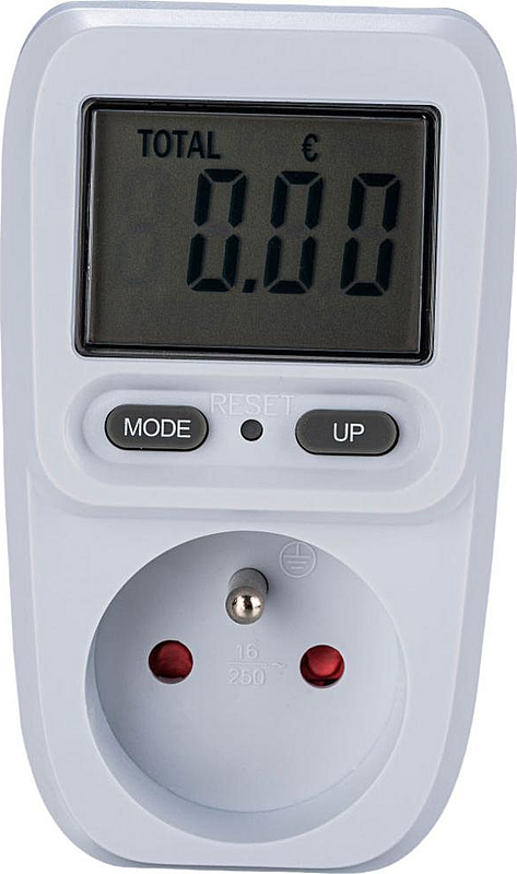 Měřič spotřeby Retlux s podsvíceným displejem, možností nastavení ceny elektřiny a ochranou proti přetížení.
