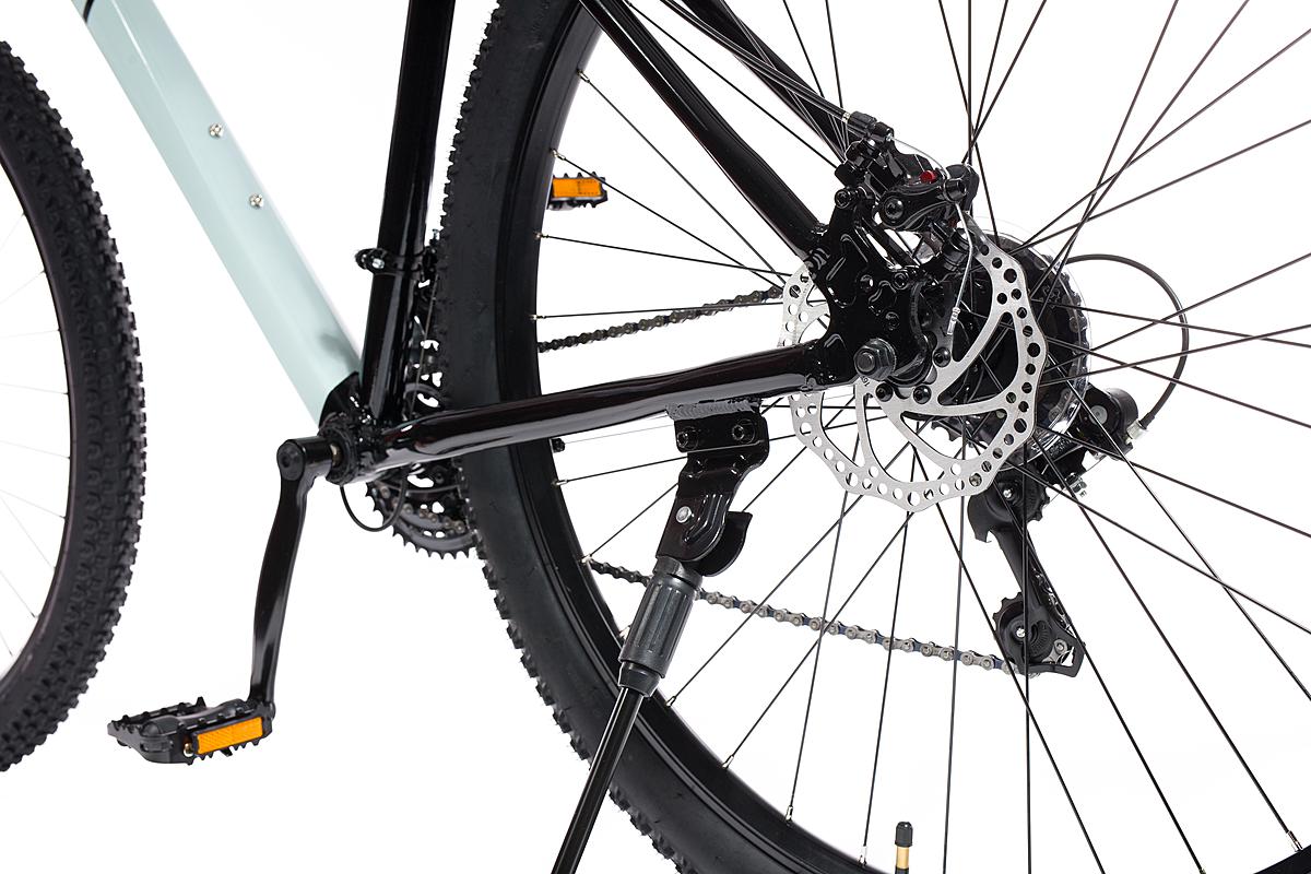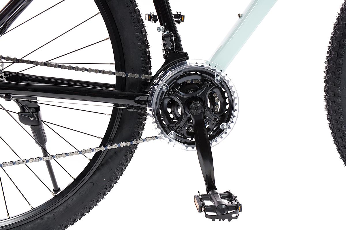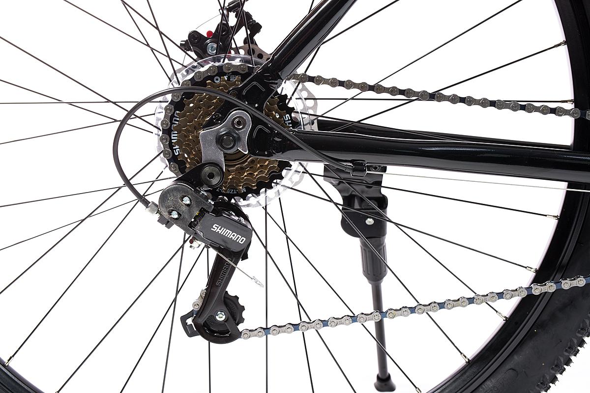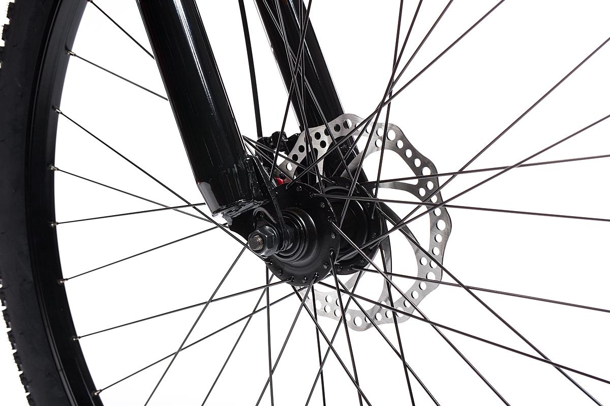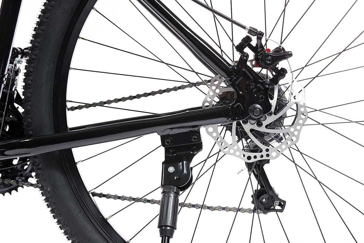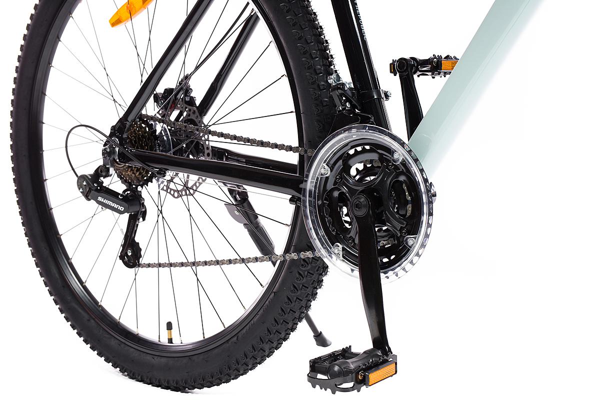 Horské kolo Olpran s hliníkovým rámem, značkovými komponenty Shimano a mechanickými kotoučovými brzdami. Odpružená přední vidlice a velikost rámu 19".