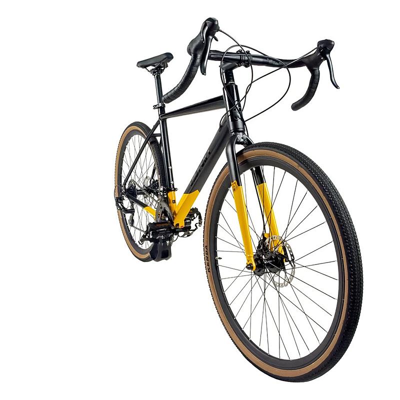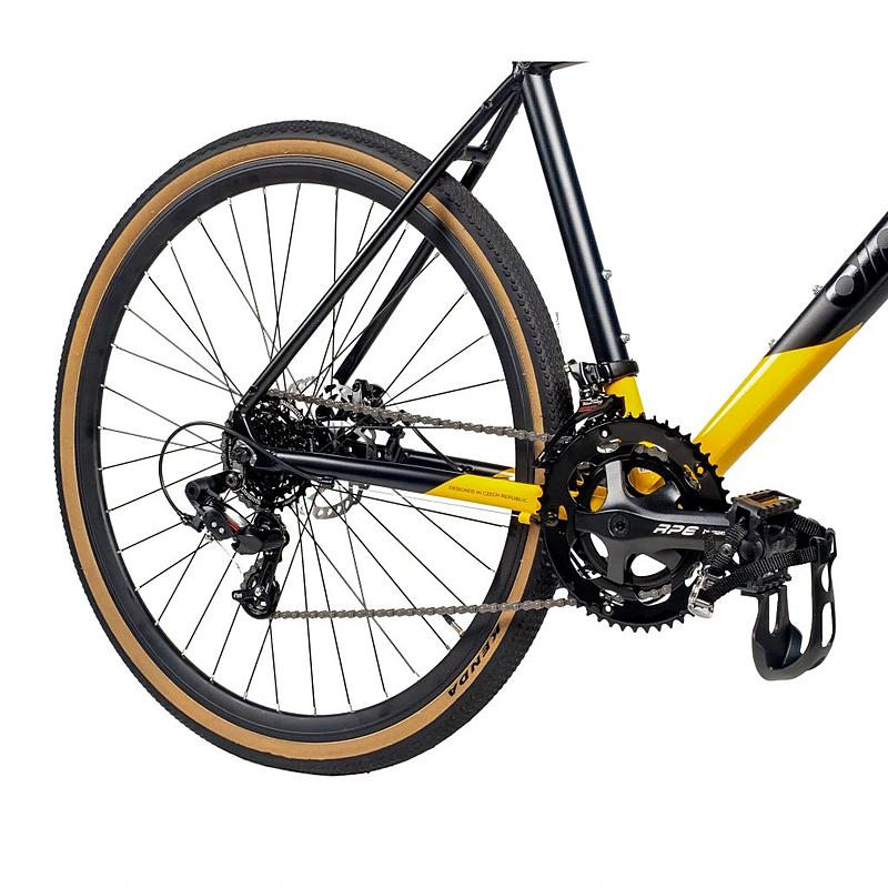 Sportovní kolo Olpran s gravelovými plášti, mechanickými kotoučovými brzdami a hliníkovým rámem velikosti L.
