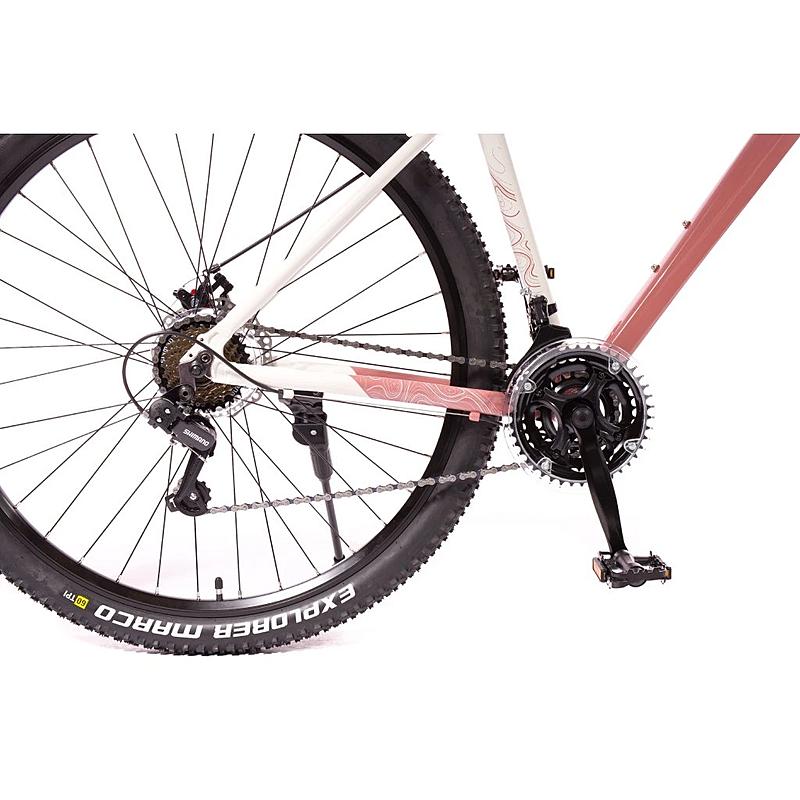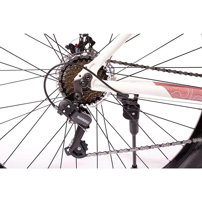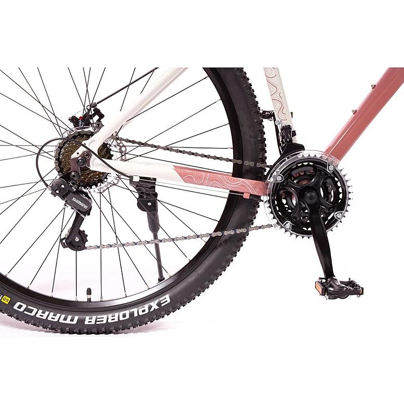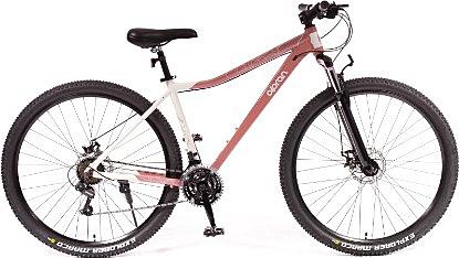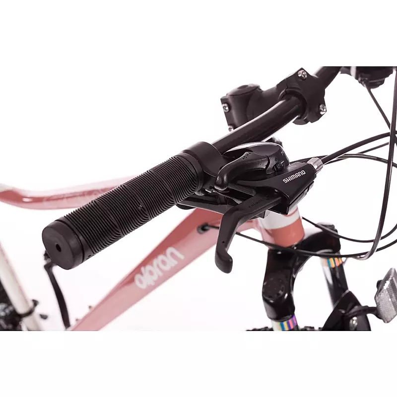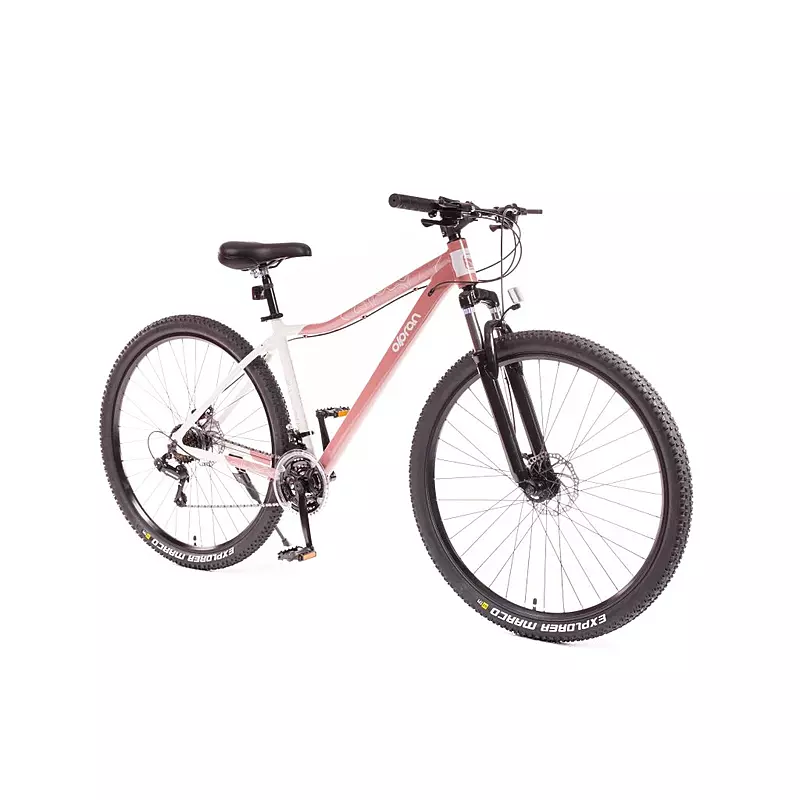 Dámské horské kolo Olpran s hliníkovým rámem, odpruženou přední vidlicí a značkovými komponenty Shimano.