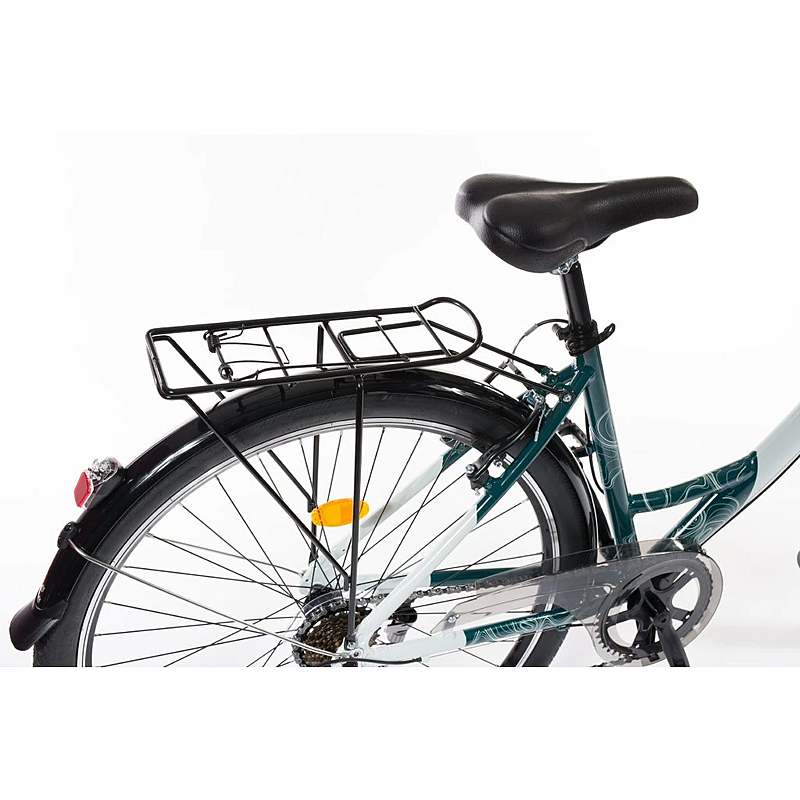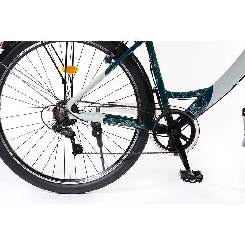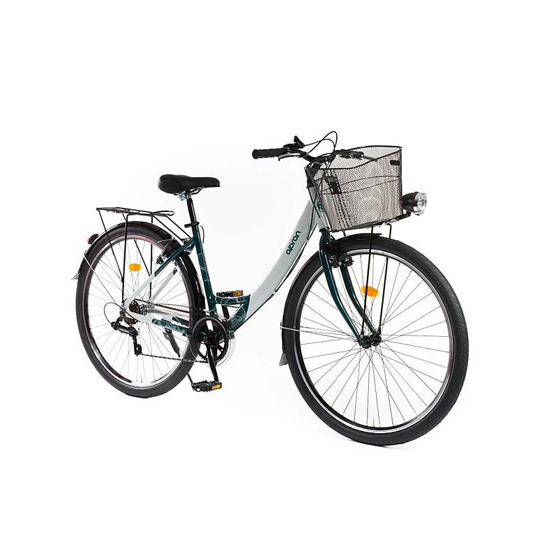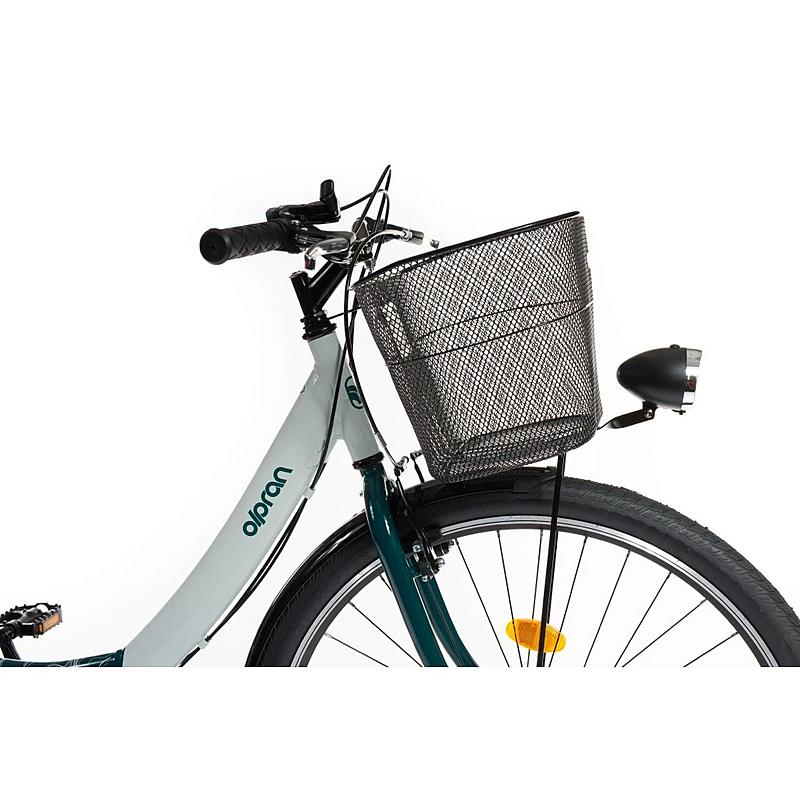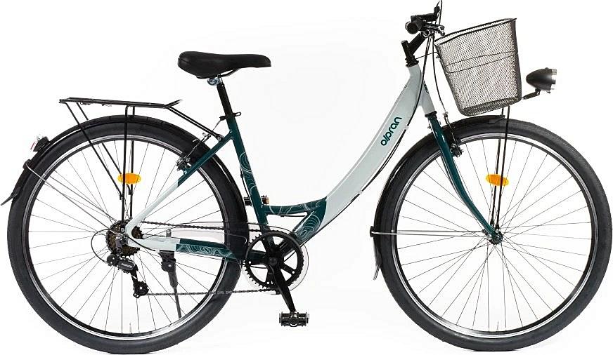 Městské kolo Olpran s hliníkovým rámem, mechanickými kotoučovými brzdami, 7 převody a 28palcovými koly.