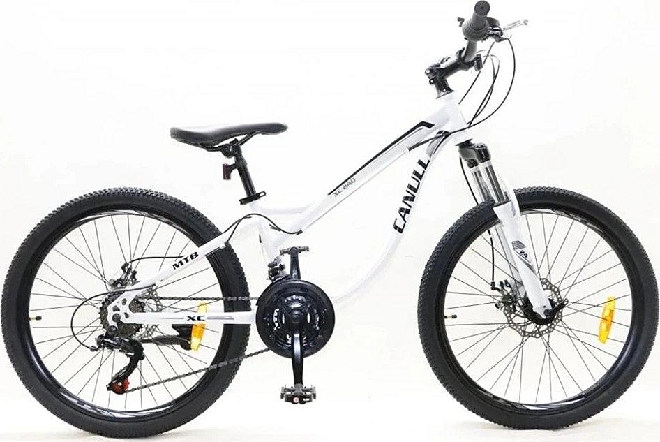 Dětské horské kolo Oplran s 24palcovými koly, odpruženou přední vidlicí a ocelovým rámem.