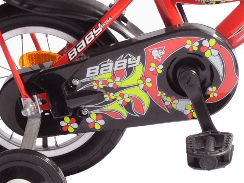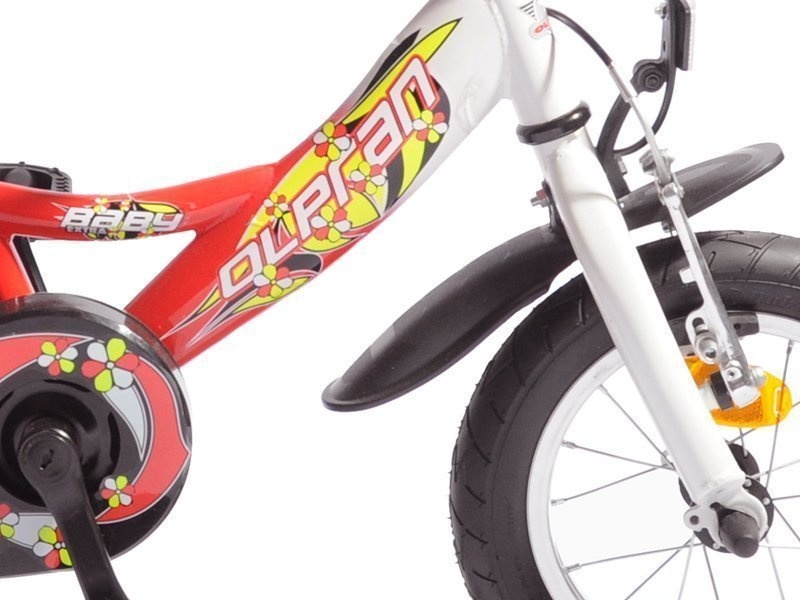 Dětské kolo Olpran s pomocnými kolečky, krytem celého řetězu a zadní protišlapnou brzdou. Velikost rámu 9 palců a hmotnost pouhých 8,5 kilogramu.