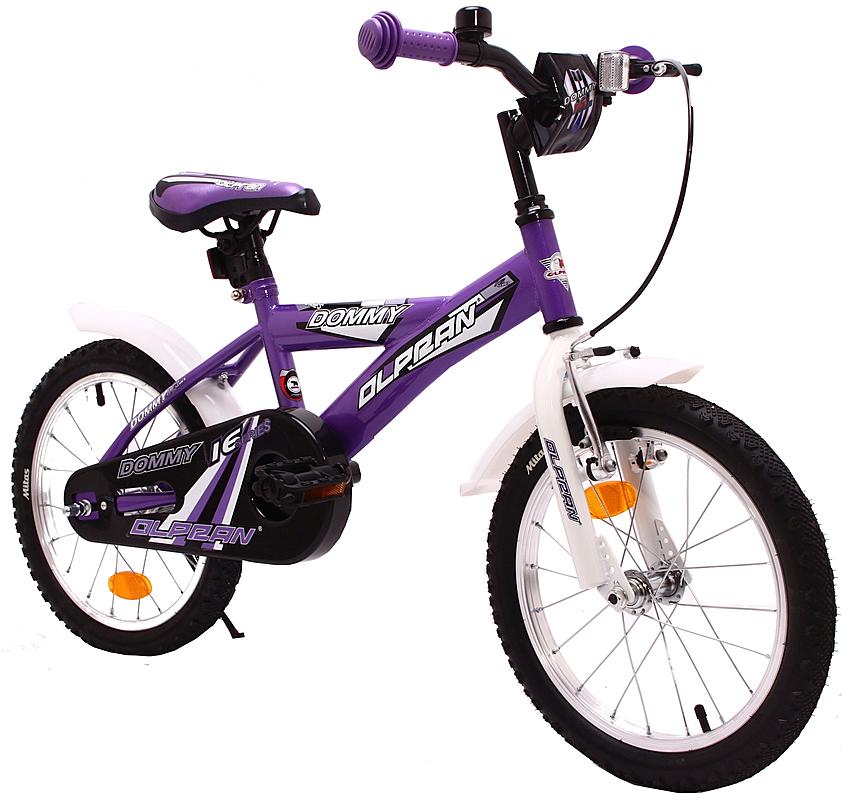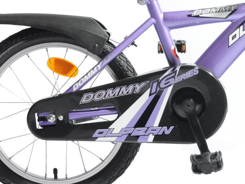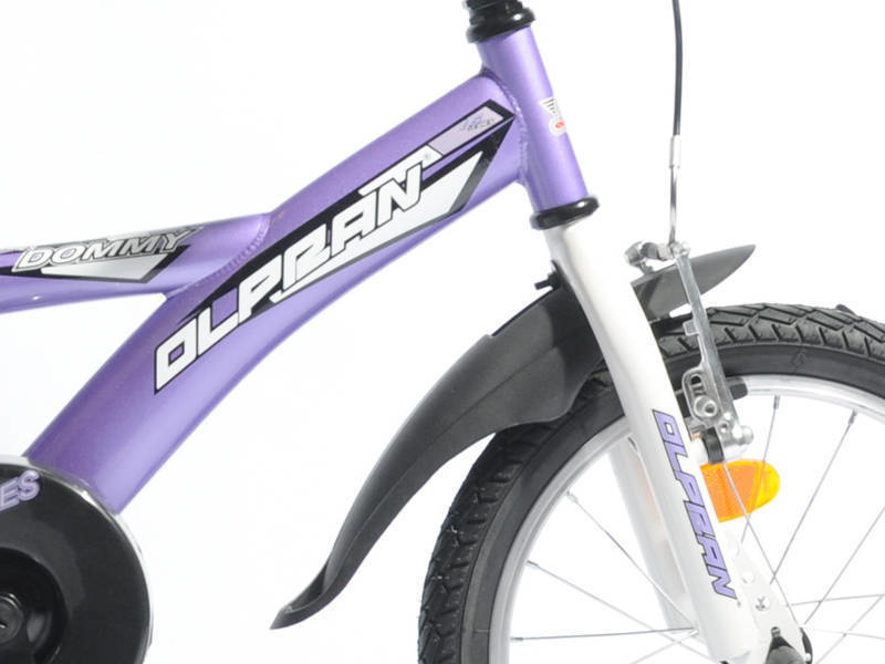 Dětské kolo Olpran se zadní protišlapnou brzdou, krytem celého řetězu a ocelovým rámem. Velikost rámu 10 palců a doporučený věk 4 až 6 let.