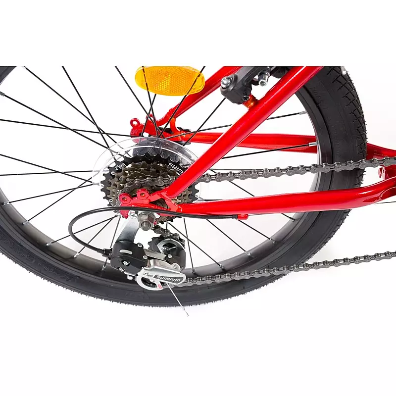 Dětské kolo Olpran s ocelovým 13palcovým rámem a značkovými komponenty Shimano. Ráfkové brzdy a 6 převodů přehazovačka.