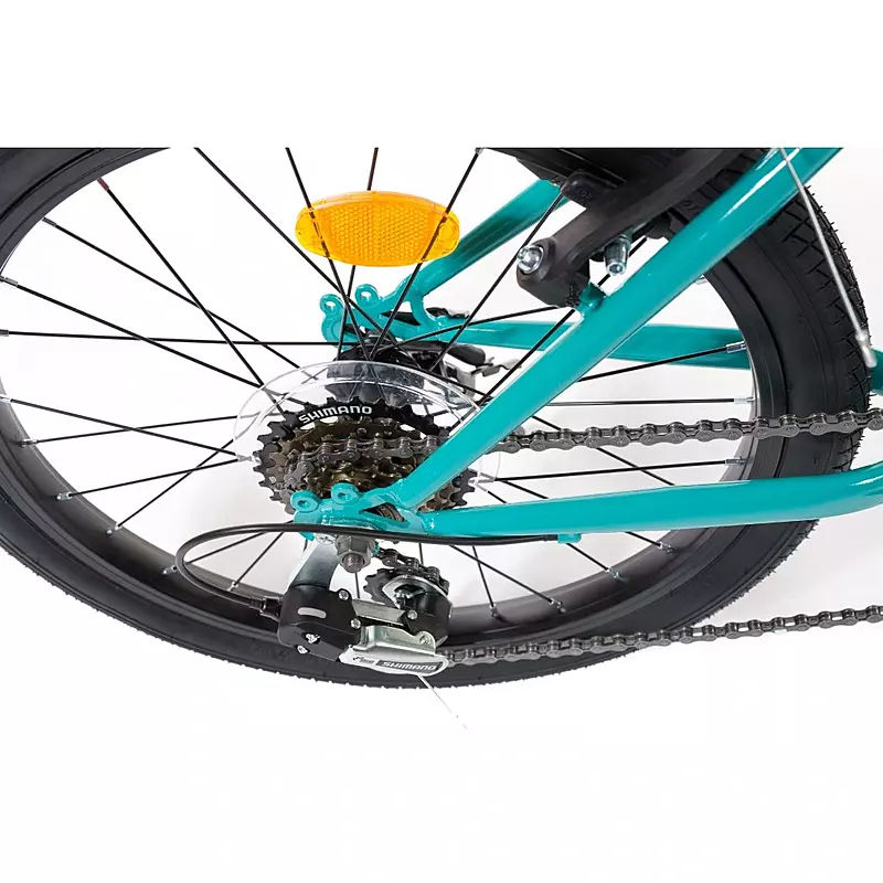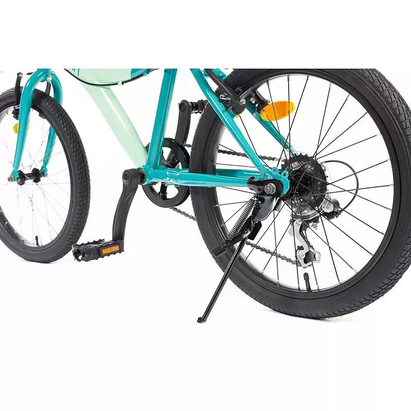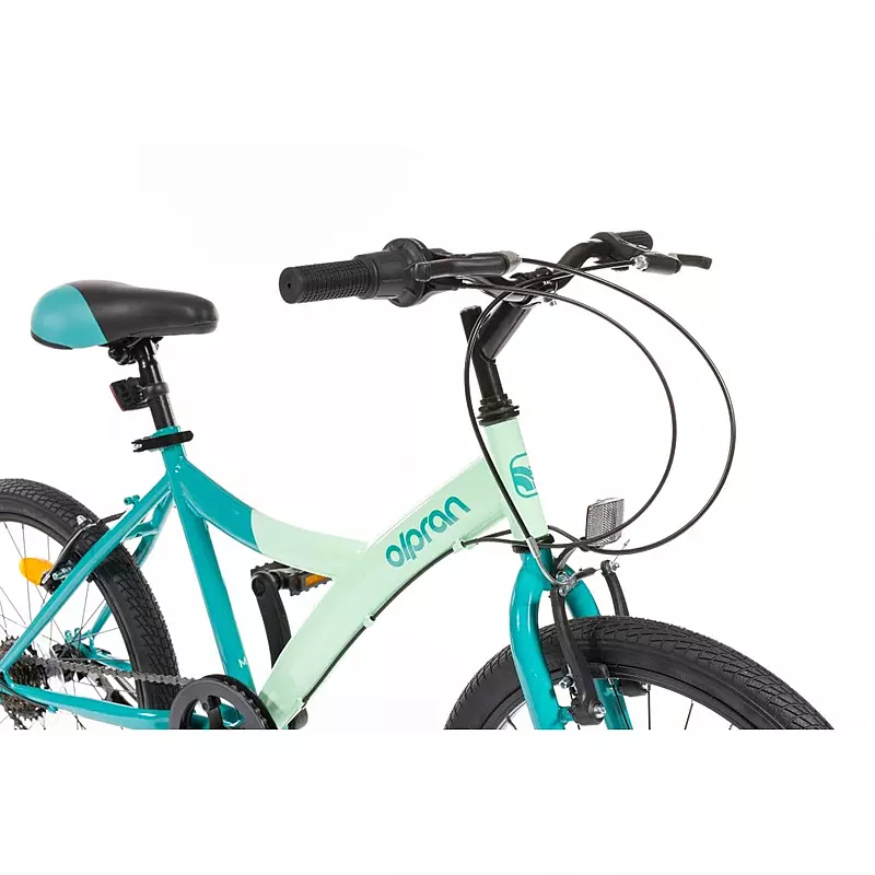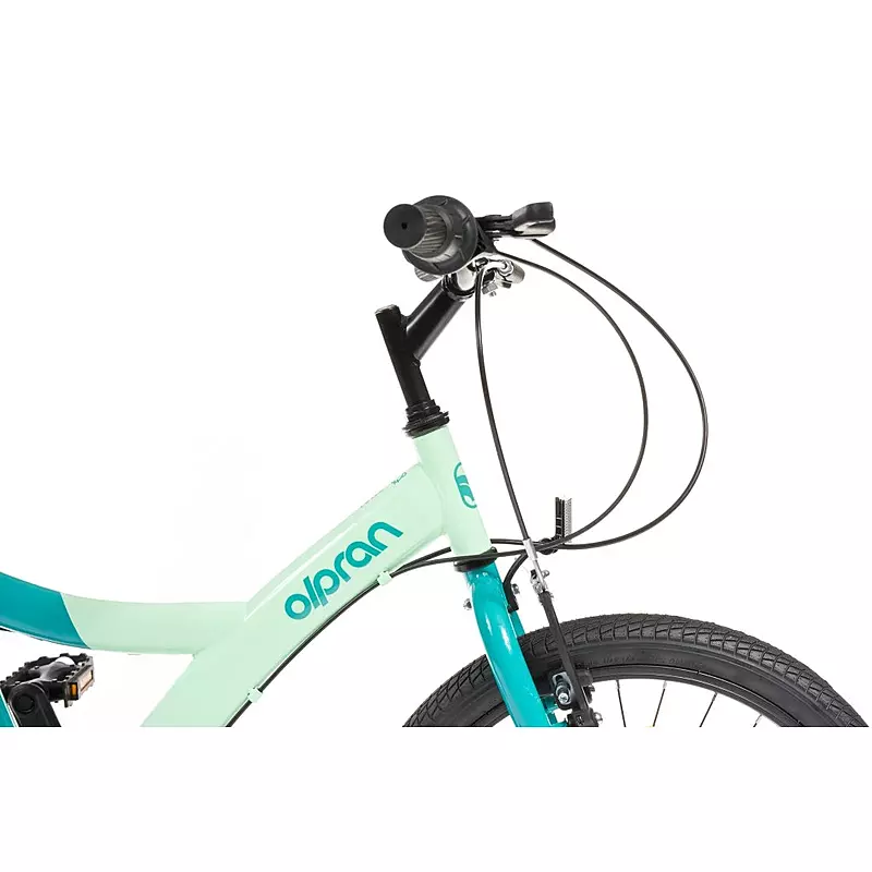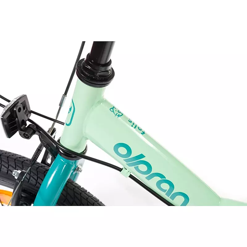 Dětské kolo Olpran s ocelovým 13palcovým rámem a značkovými komponenty Shimano. Ráfkové brzdy a 6 převodů přehazovačka.