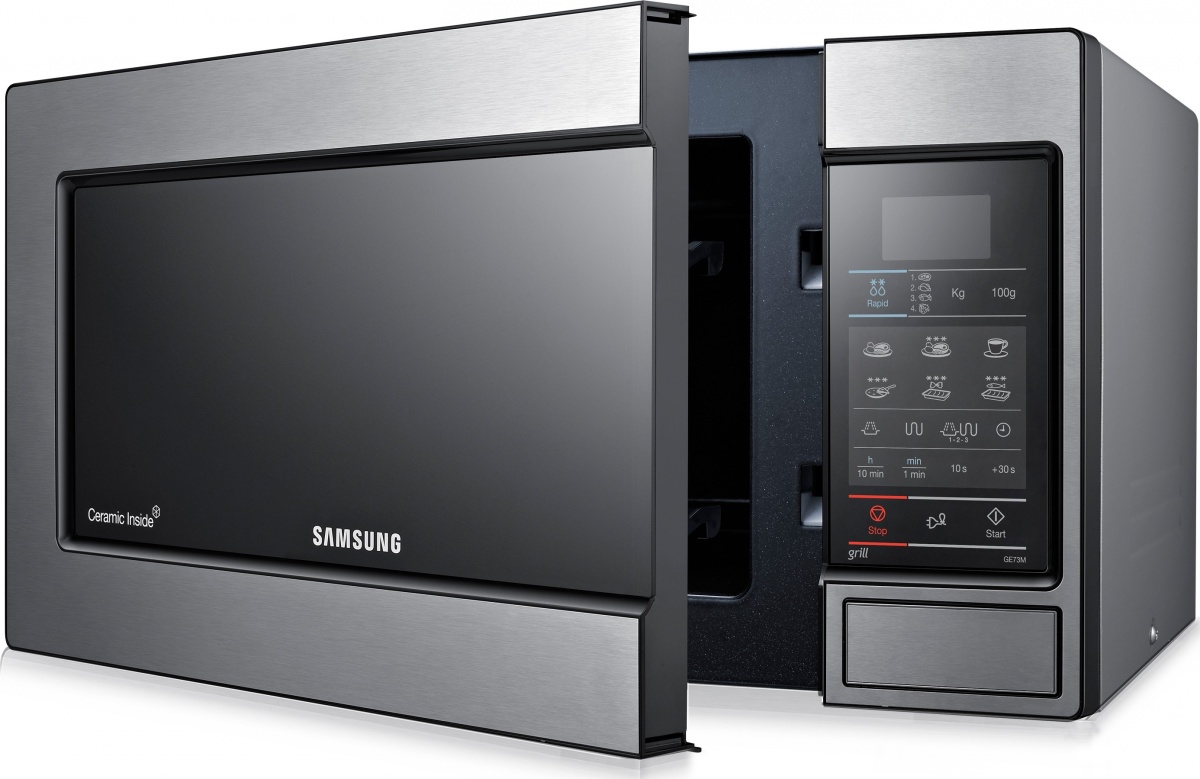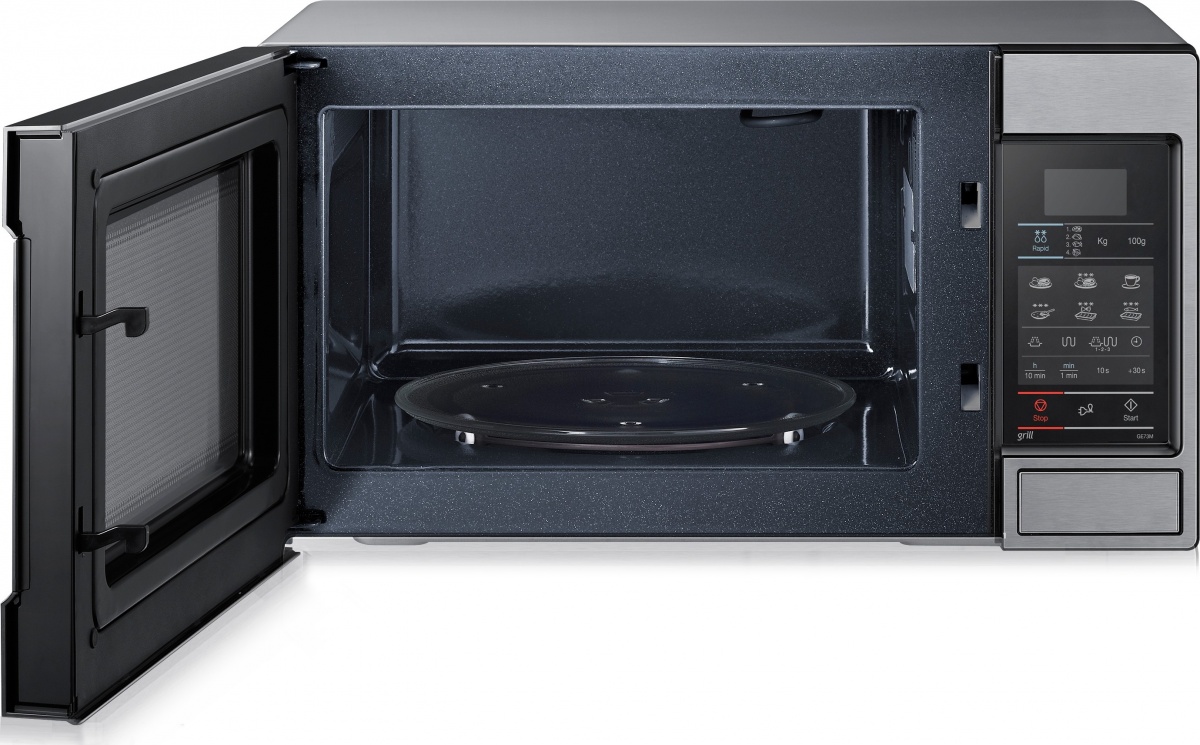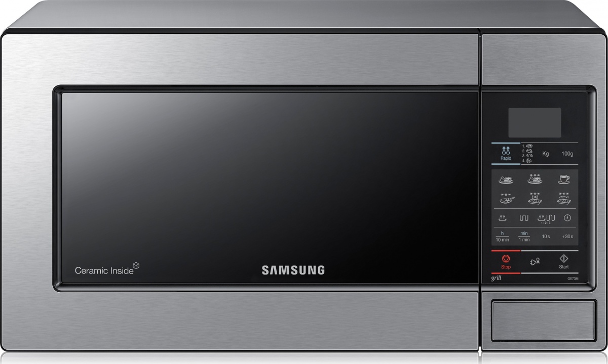 Mikrovlnná trouba Samsung s grilem, automatickým vaření, rovnoměrnou distribucí vln a keramickým vnitřním povrchem...