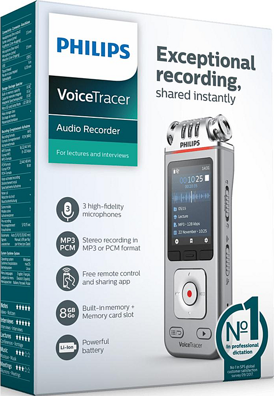 Diktafon Philips s interní pamětí 8 GB, hlasovou aktivací a sluchátkovým výstupem.