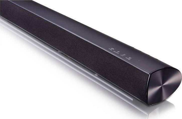 Bezdrátový soundbar LG s hudebním výkonem 100 wattů, přenosem pomocí Bluetooth, optickým vstupem a snadným propojením s televizí.