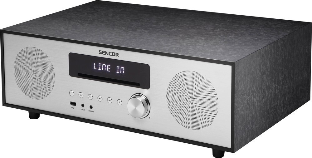 Audiosystém Sencor s konstrukcí ze dřeva a hliníku, možností přehrávání z USB disku a celkovým maximálním výkonem 80 wattů.