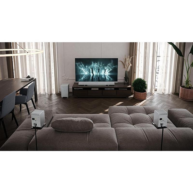 Bezdrátové zadní Surround reproduktory Sharp k soundbaru Sharp Q s výkonem 200 W a možností montáže na zeď.