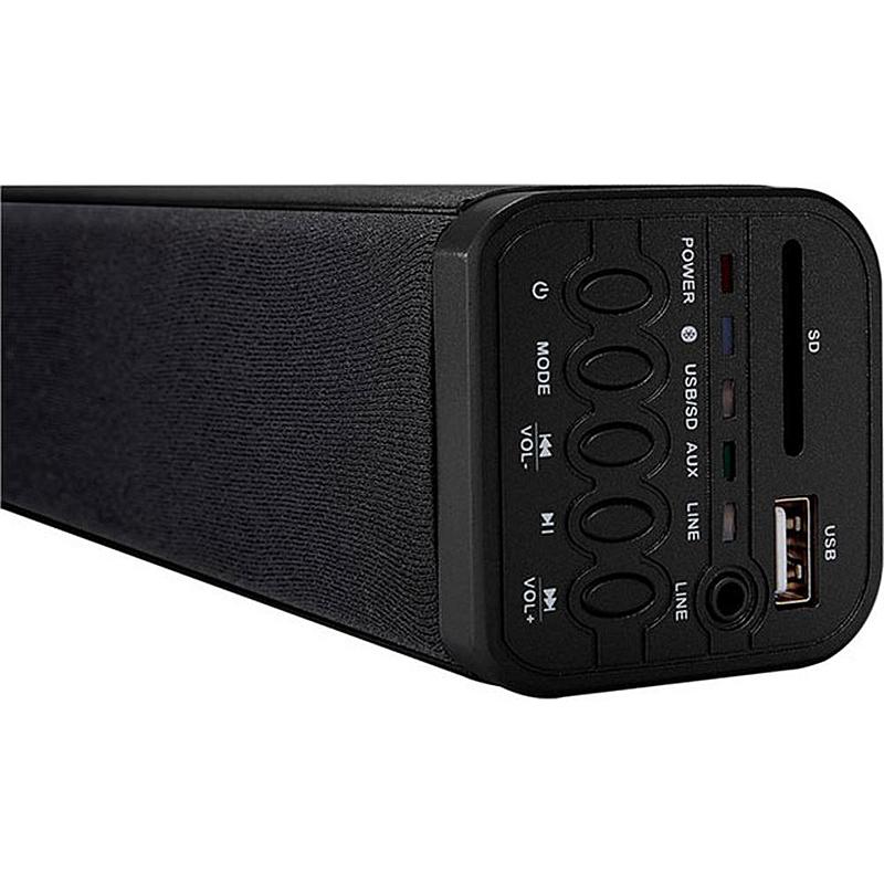 Soundbar 2.1 Thomson s Bluetooth, výkonem 200 W a kabelovým subwooferem.