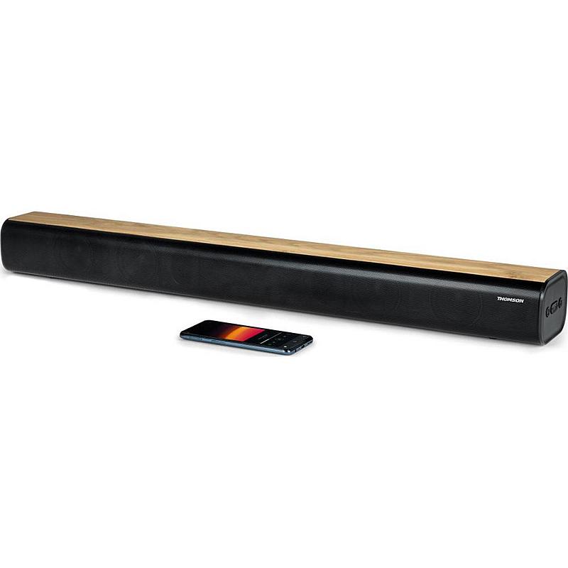 Soundbar systém 2.0 Thomson s Bluetooth, možností nastavení výšek a basů a USB vstupem pro přehrávání MP3.