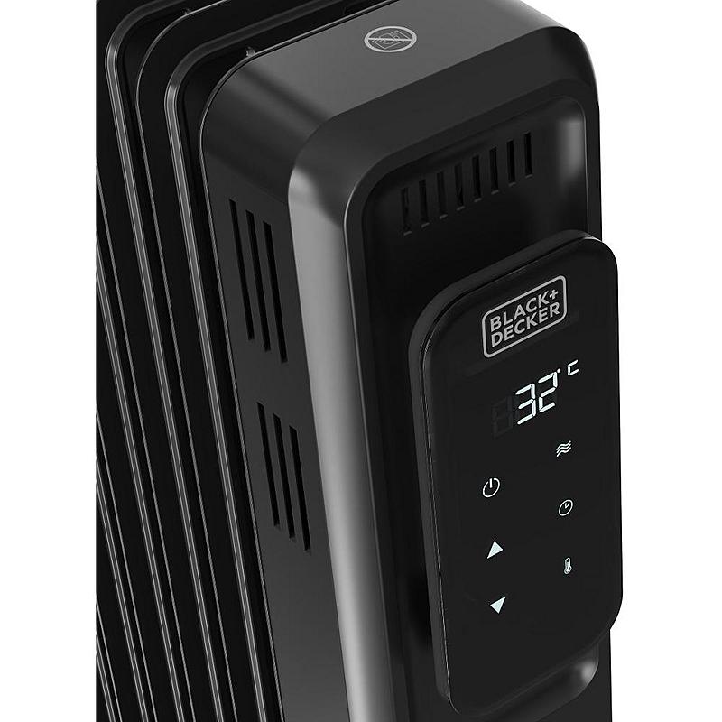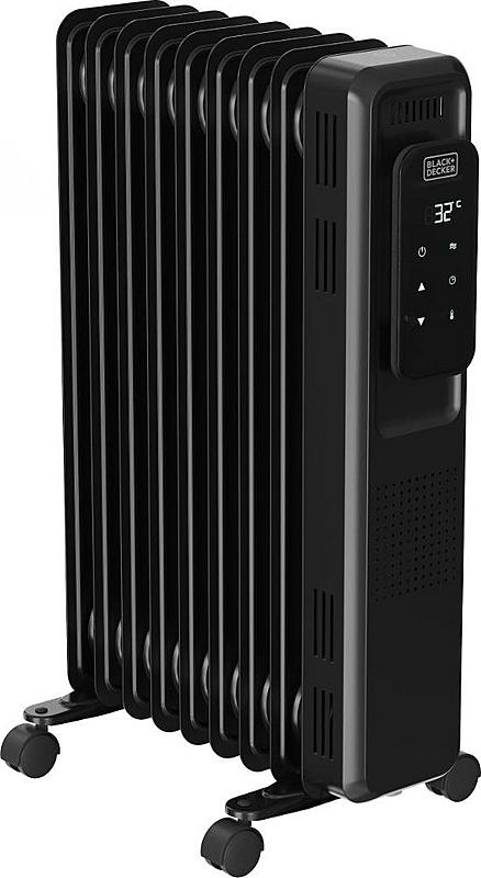 Olejový radiátor Black + Decker s časovačem, digitálním displejem s LED osvětlením a regulací teploty.