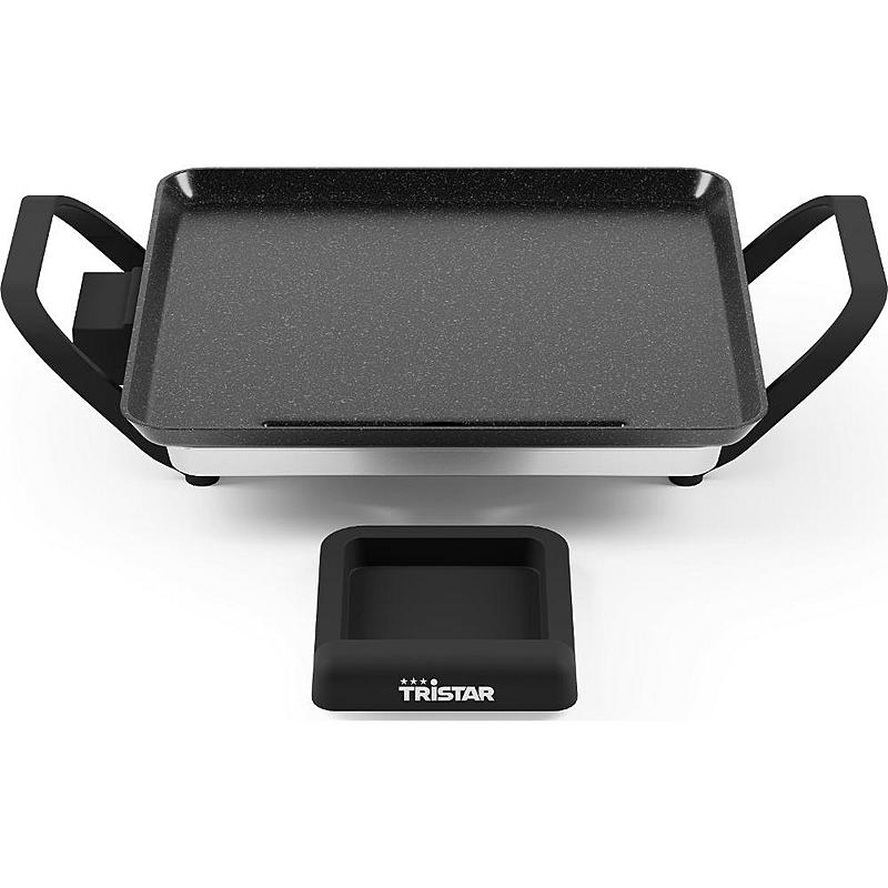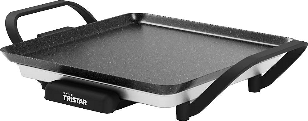 Stolní gril Tristar s nepřilnavým povrchem, odnímatelným zásobníkem na tuk a nastavitelným termostatem.