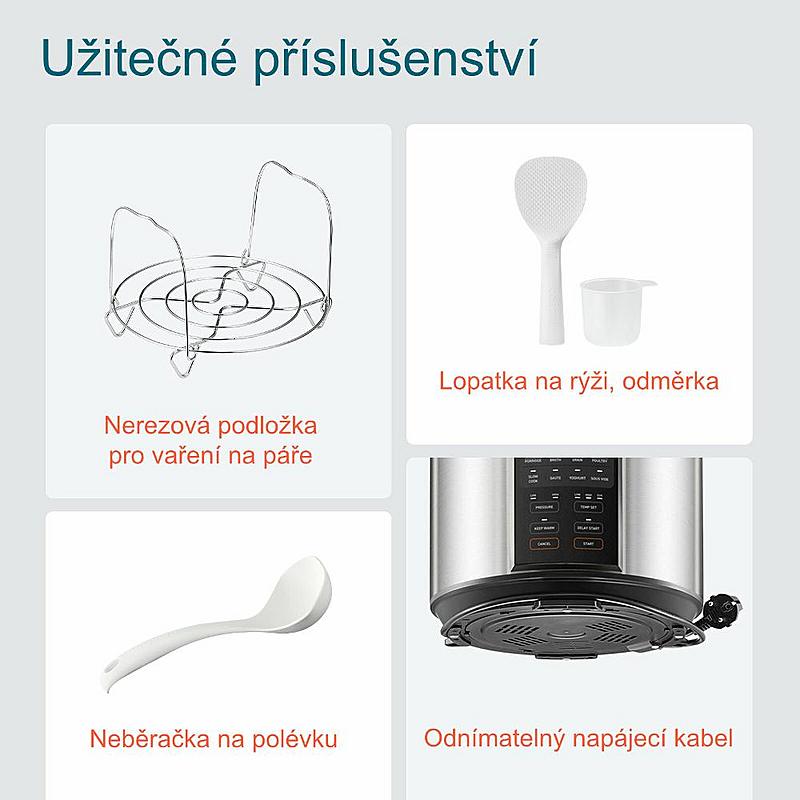 Multifunkční tlakový hrnec Cosori s objemem 5,7 l, 14 chytrými programy a ochranou proti přehřátí.