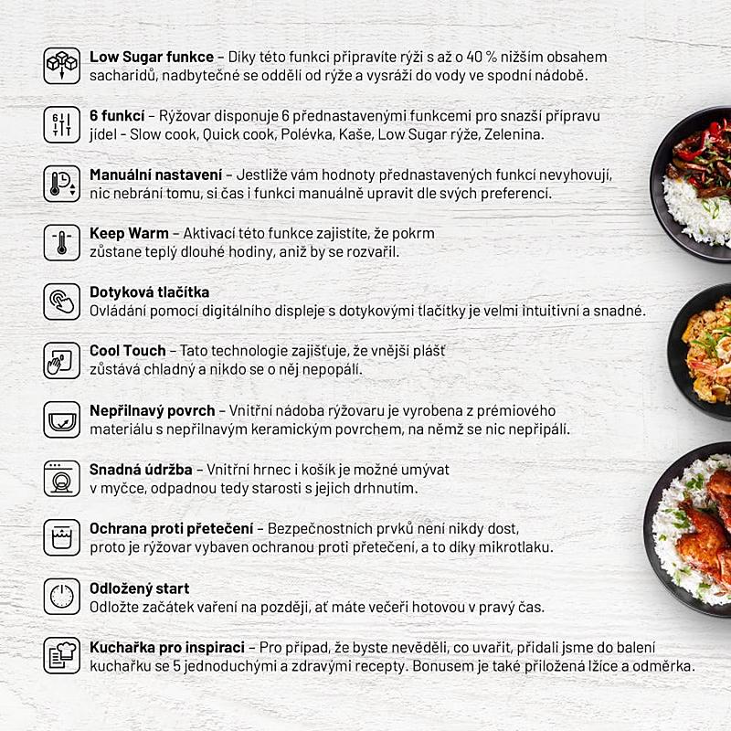 Multifunkční rýžovar Lauben s automatickými programy a objemem 3 l.
