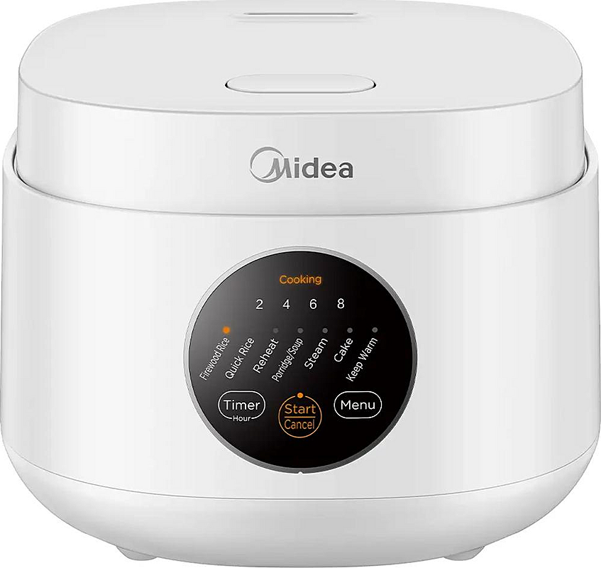 Rýžovar Midea s objemem 1 l, displejem a tlačítkovým ovládáním.