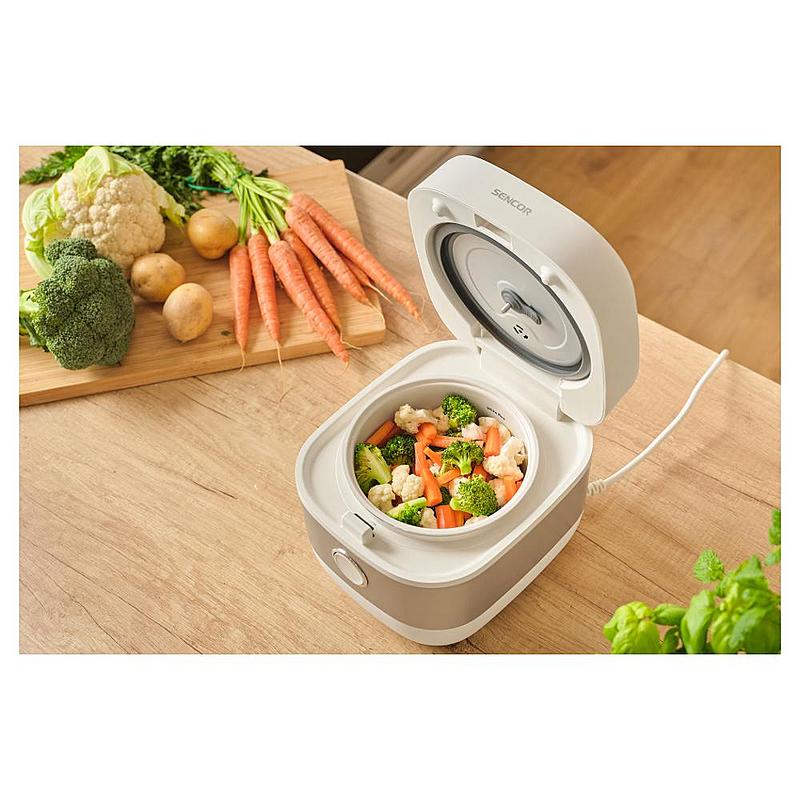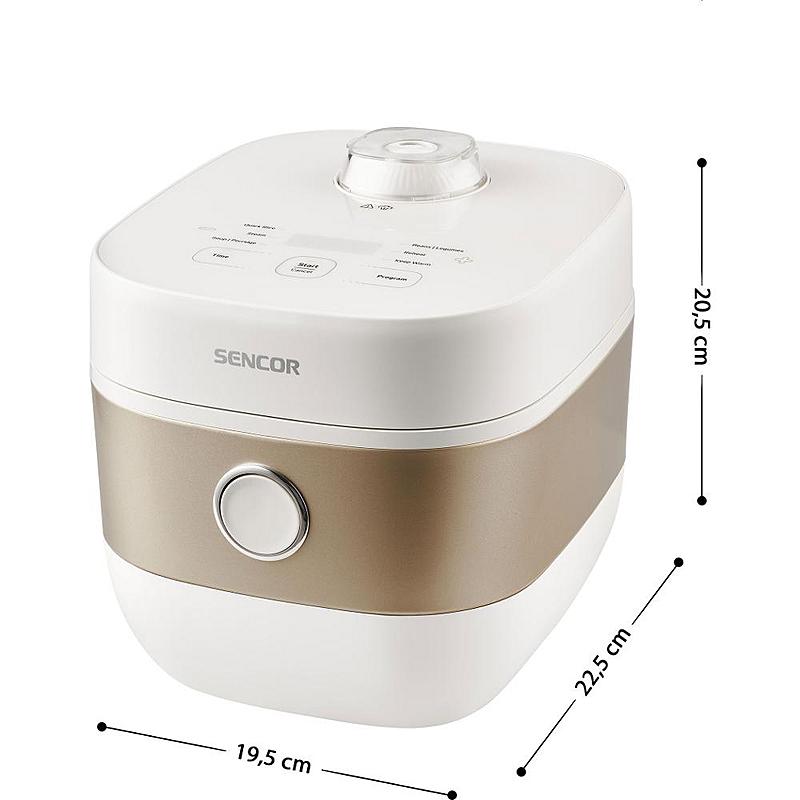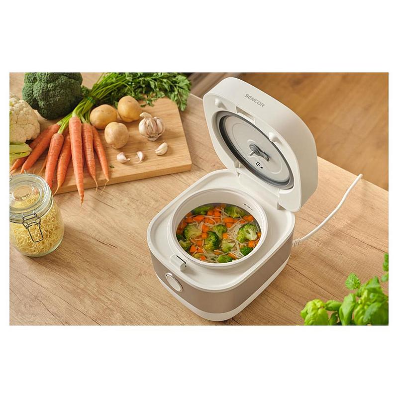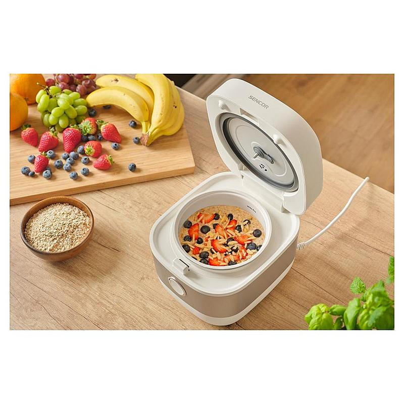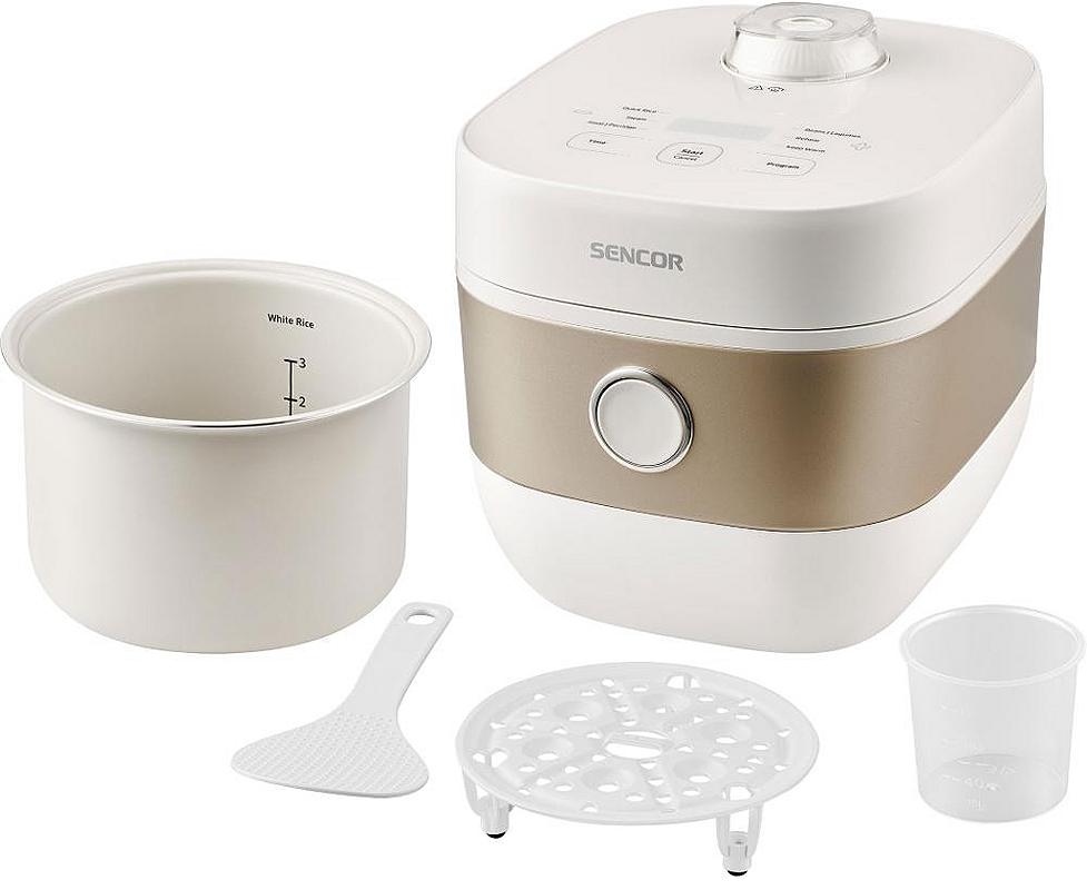Multifunkční rýžovar Sencor s šesti přednastavenými programy na rýži, kaši i polévky a keramickým povrchem.