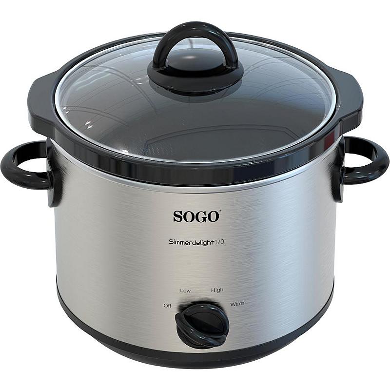 Elektrický hrnec pro pomalé vaření Sogo s keramickou nádobou, kapacitou 3,5 l a funkcí udržování teploty.