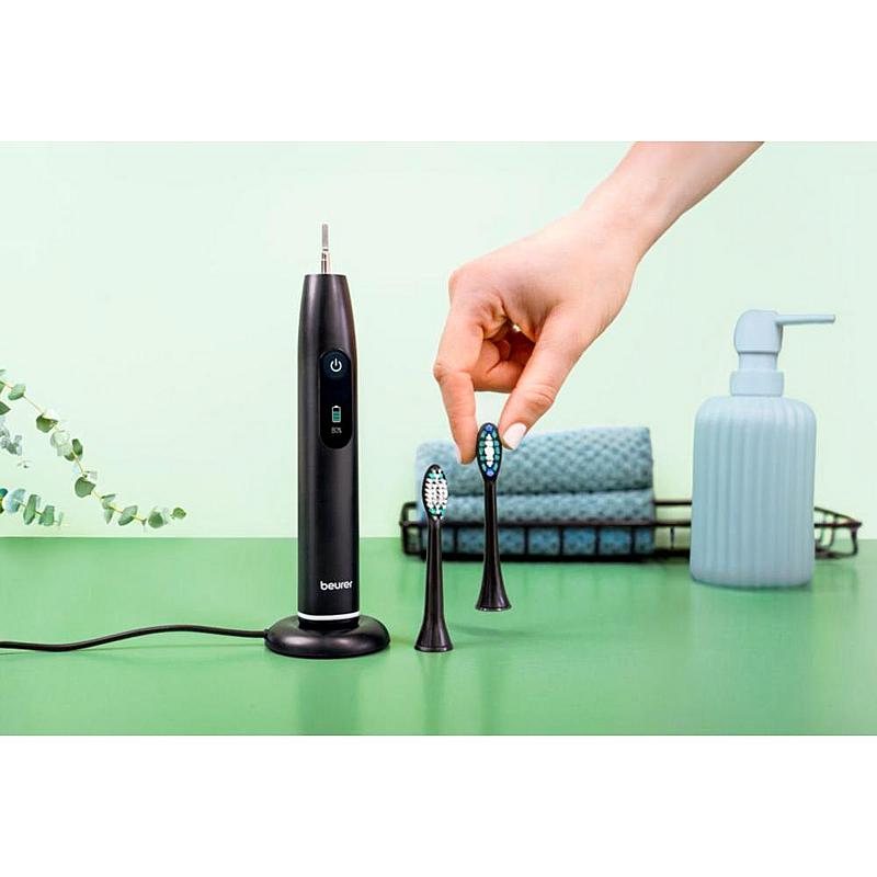 Sonický kartáček Beurer s 5 programy, tlakovým senzorem a výdrží baterie až 22 dní na jedno nabití.
