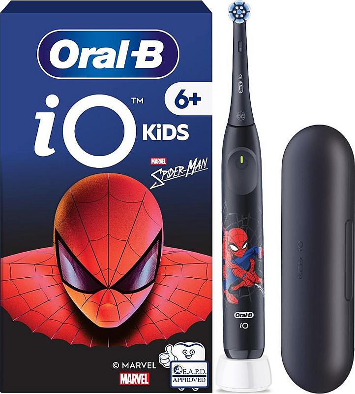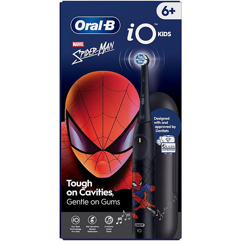 Elektrický zubní kartáček Oral-B pro děti s obrázky Spiderman. 3 režimy čištění, sledování přes aplikaci a časovač.