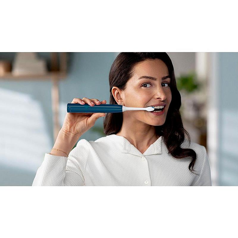 Sonický kartáček Philips s dvěma stupni intenzity čištění, zacvakávací hlavicí kartáčku a časovačem.