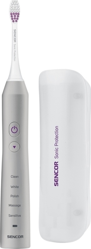 Elektrický zubní kartáček Sencor s 5 přednastavenými programy a UV sterilizátorem.