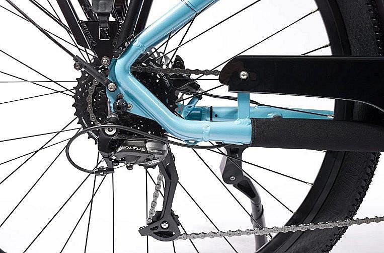 Elektrokolo Olpran s hydraulickými brzdami, odpruženou přední vidlicí a centrálním motorem. Velikost rámu 18 palců a velikost kol 27,5 palců.