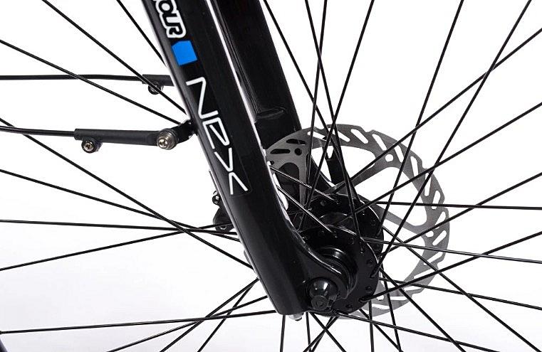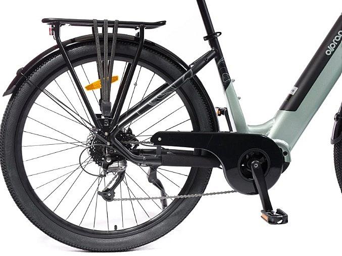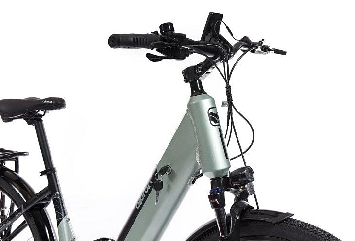 Elektrokolo Olpran s hydraulickými brzdami, odpruženou přední vidlicí a centrálním motorem. Velikost rámu 18 palců a velikost kol 27,5 palců.