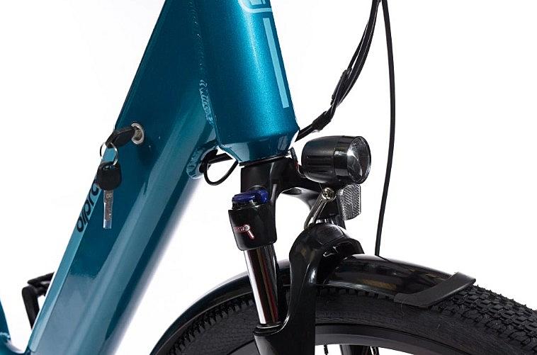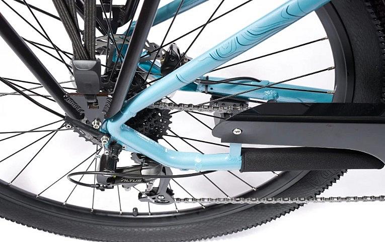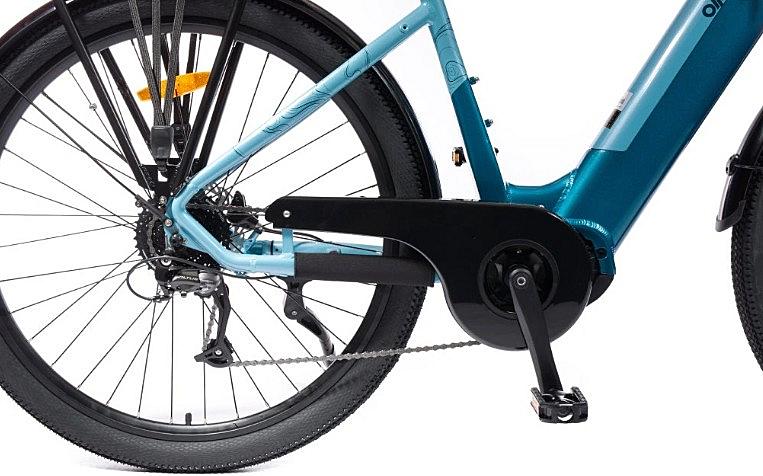Elektrokolo Olpran s hydraulickými brzdami, odpruženou přední vidlicí a centrálním motorem. Velikost rámu 18 palců a velikost kol 29 palců.