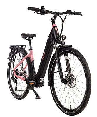 Městské elektrokolo Olpran s hliníkovým rámem, výkonným středovým motorem, odpruženou přední vidlicí a zadním nosičem. Velikost kol 28 palců a velikost rámu 19 palců.