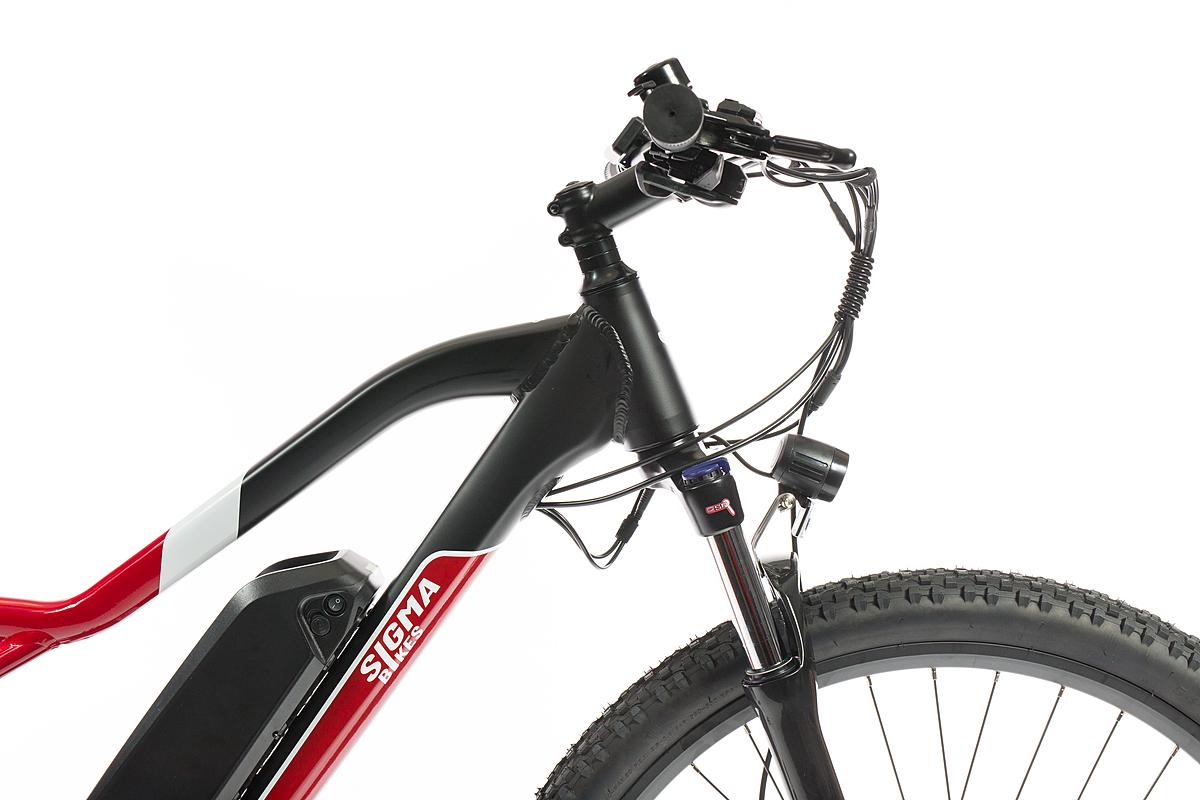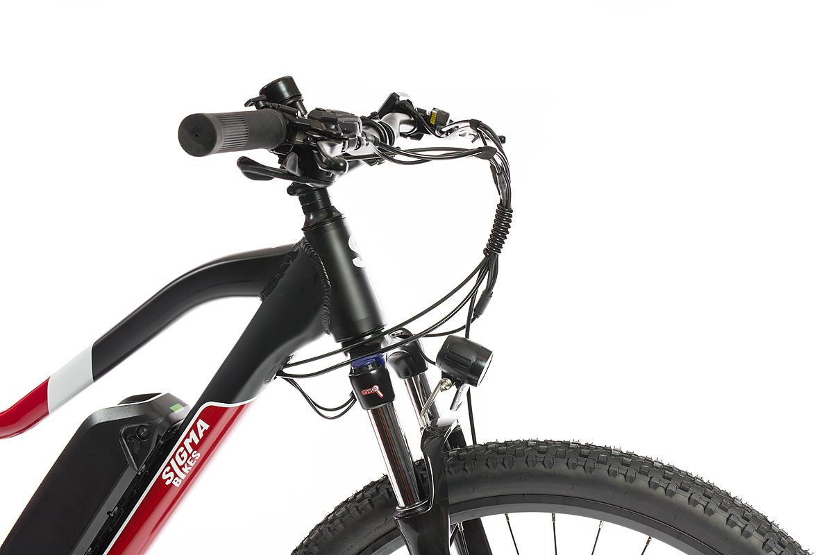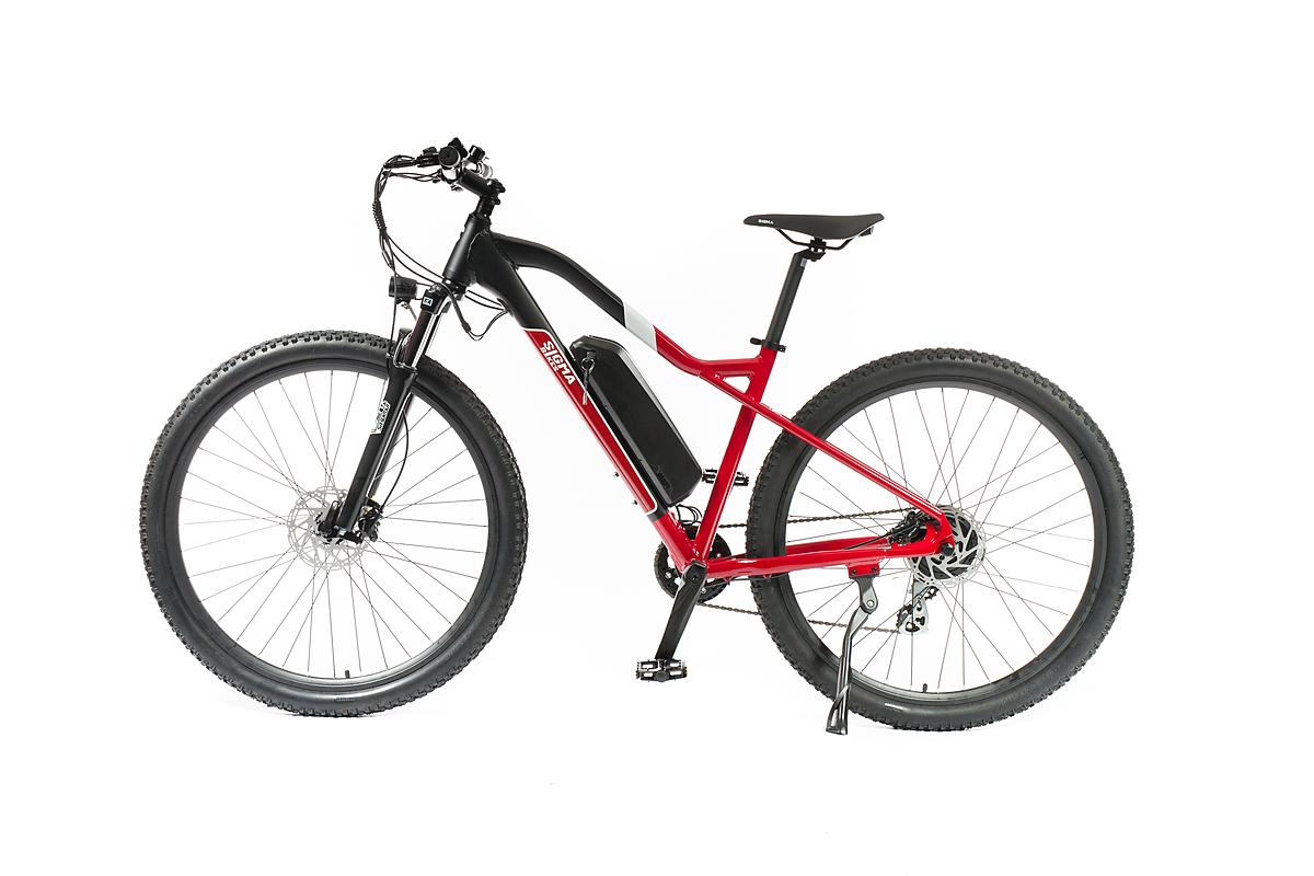 Dámské rekreační horské elektrokolo Sigma s motorem Sutto v zadním náboji, hliníkovým rámem a odpruženou přední vidlicí. Max. dojezd 100 km a kapacita baterie 375 Wh.